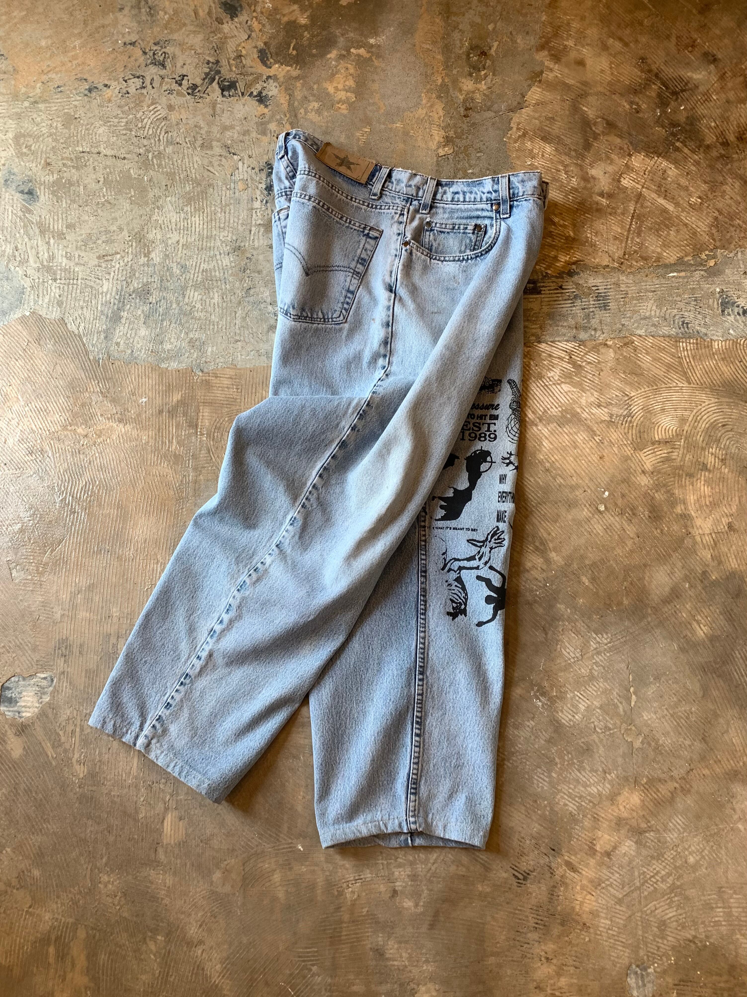 アメリカ買い付け時からペイントされてたリーバイスのバギーシルエットのデニムパンツ。