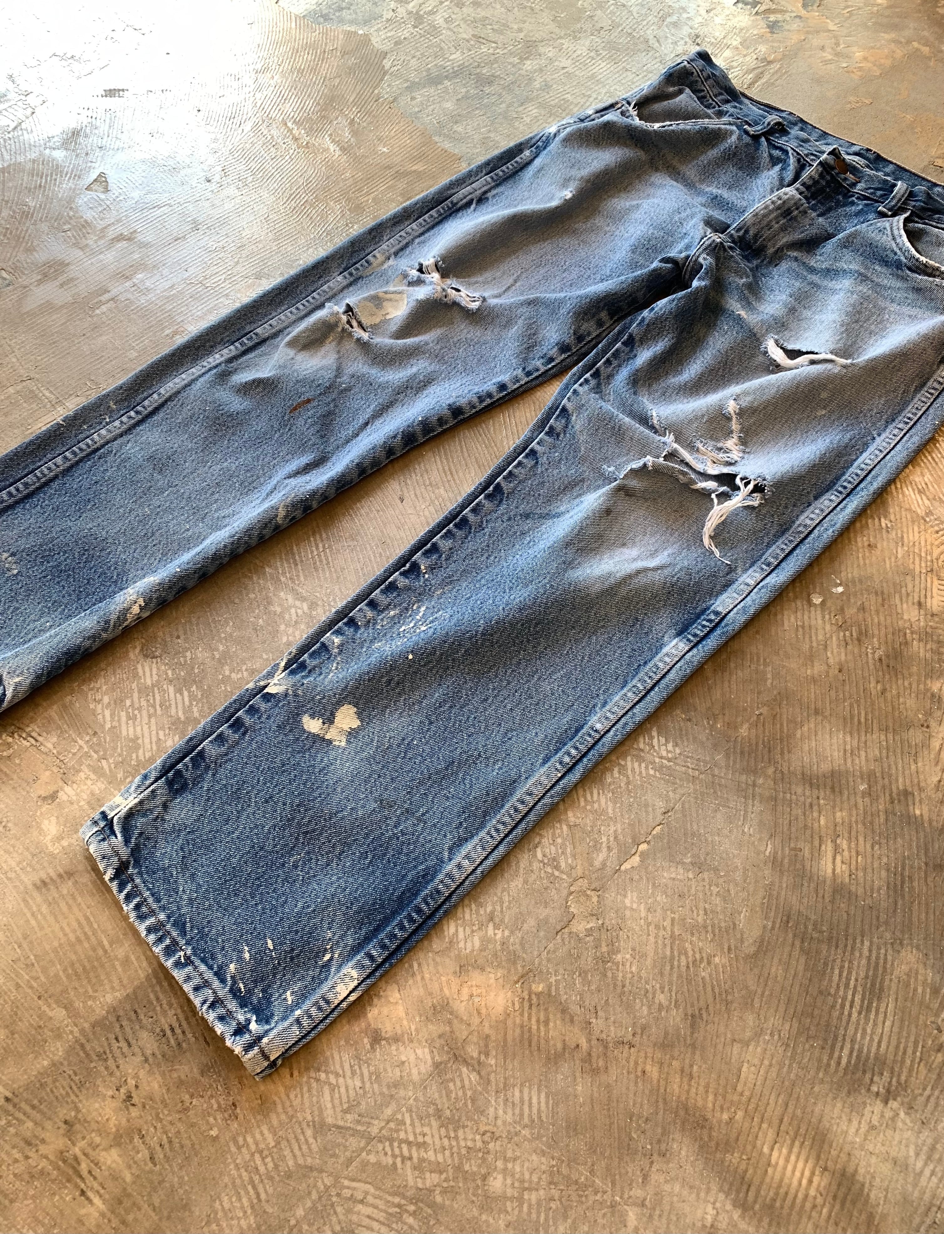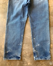 ユーズドでかなり履き込んでおり全体的に色落ち、色褪せ、変色、汚れ、ペンキ飛び、穴、スレ、スレ破れが多数あります。