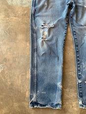 履き込まれたデニムのダメージや色落ちが素晴らしい1本。