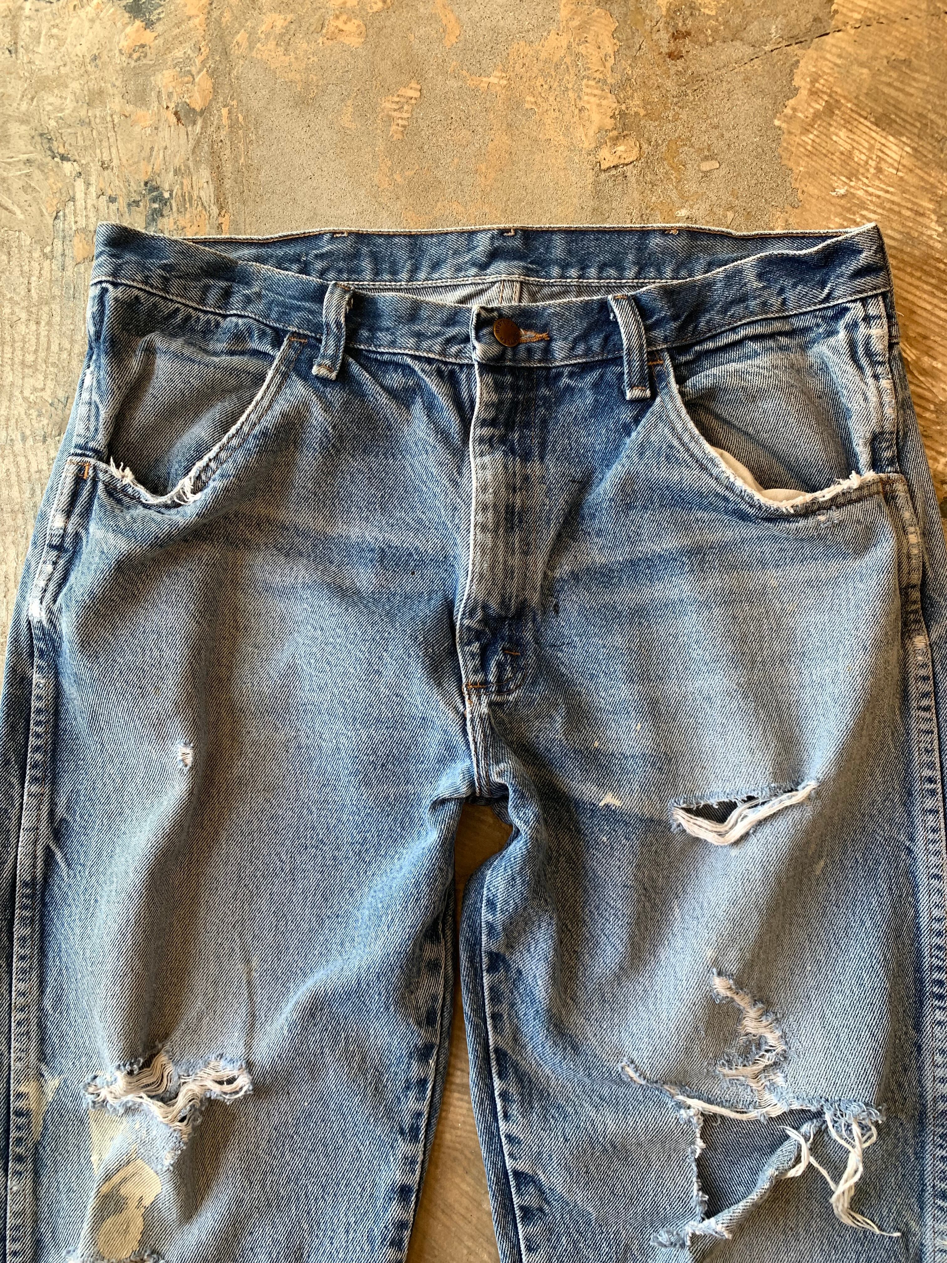 00年代頃のRUSTLER製、ハードクラッシュのデニムパンツ。