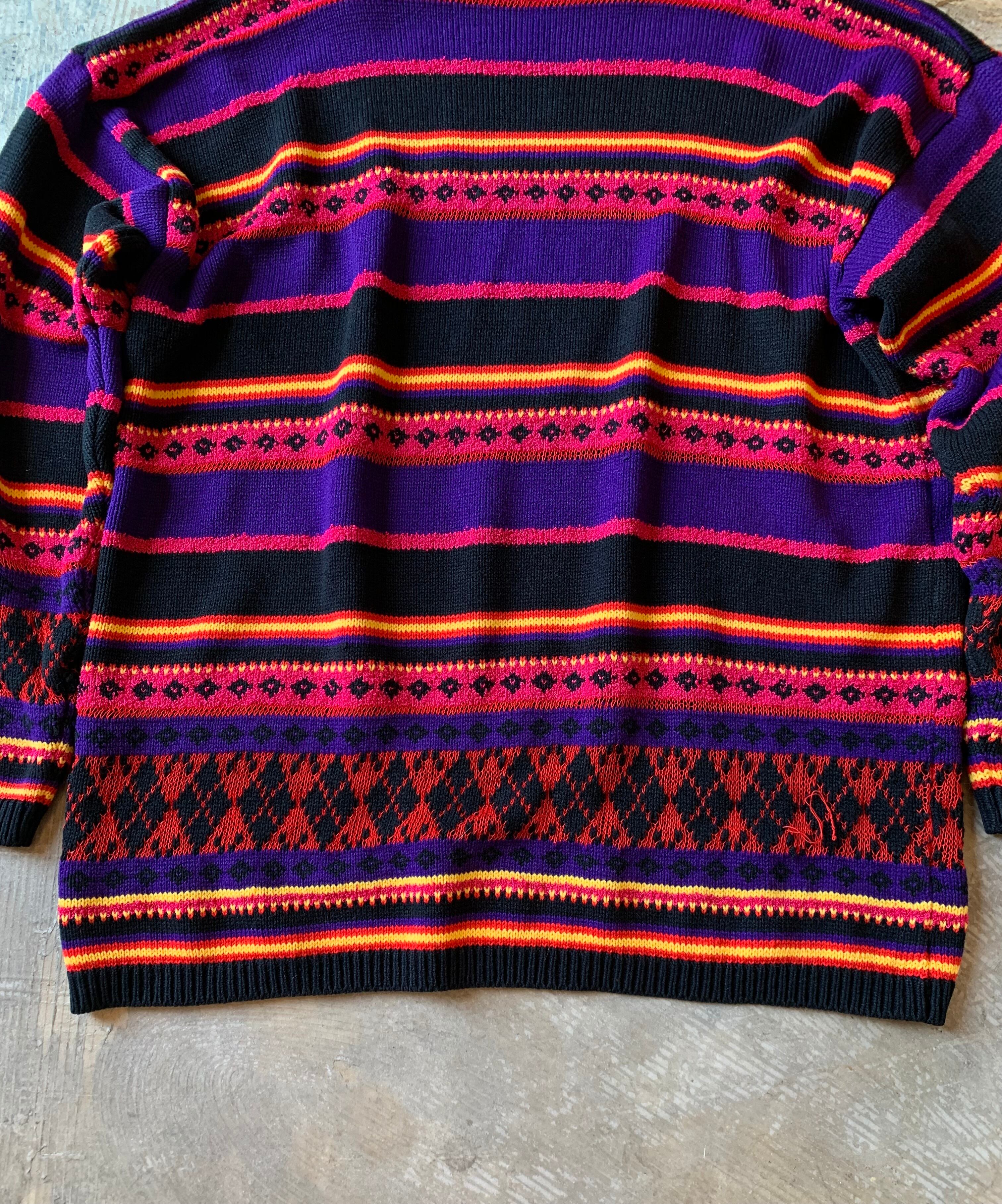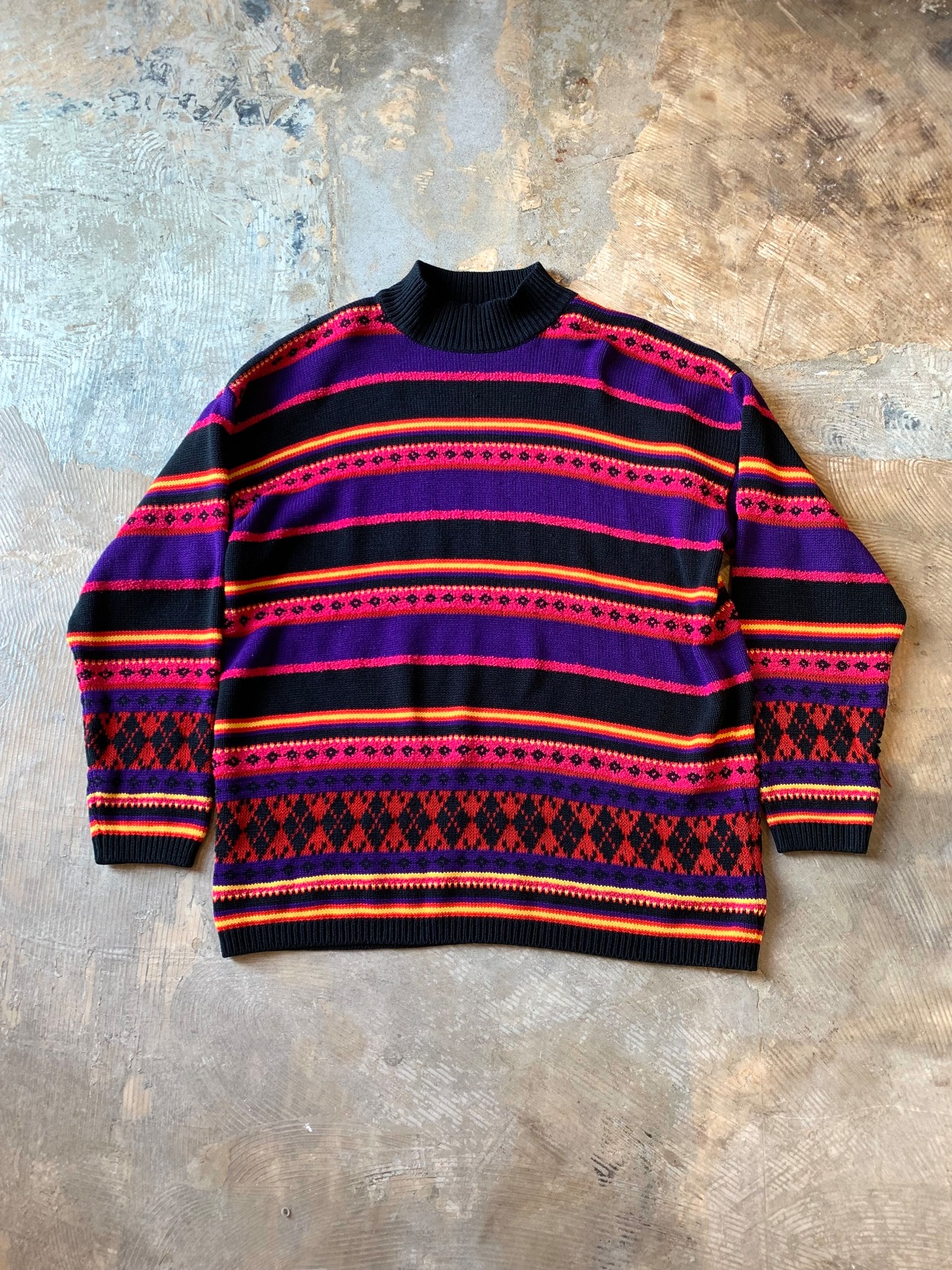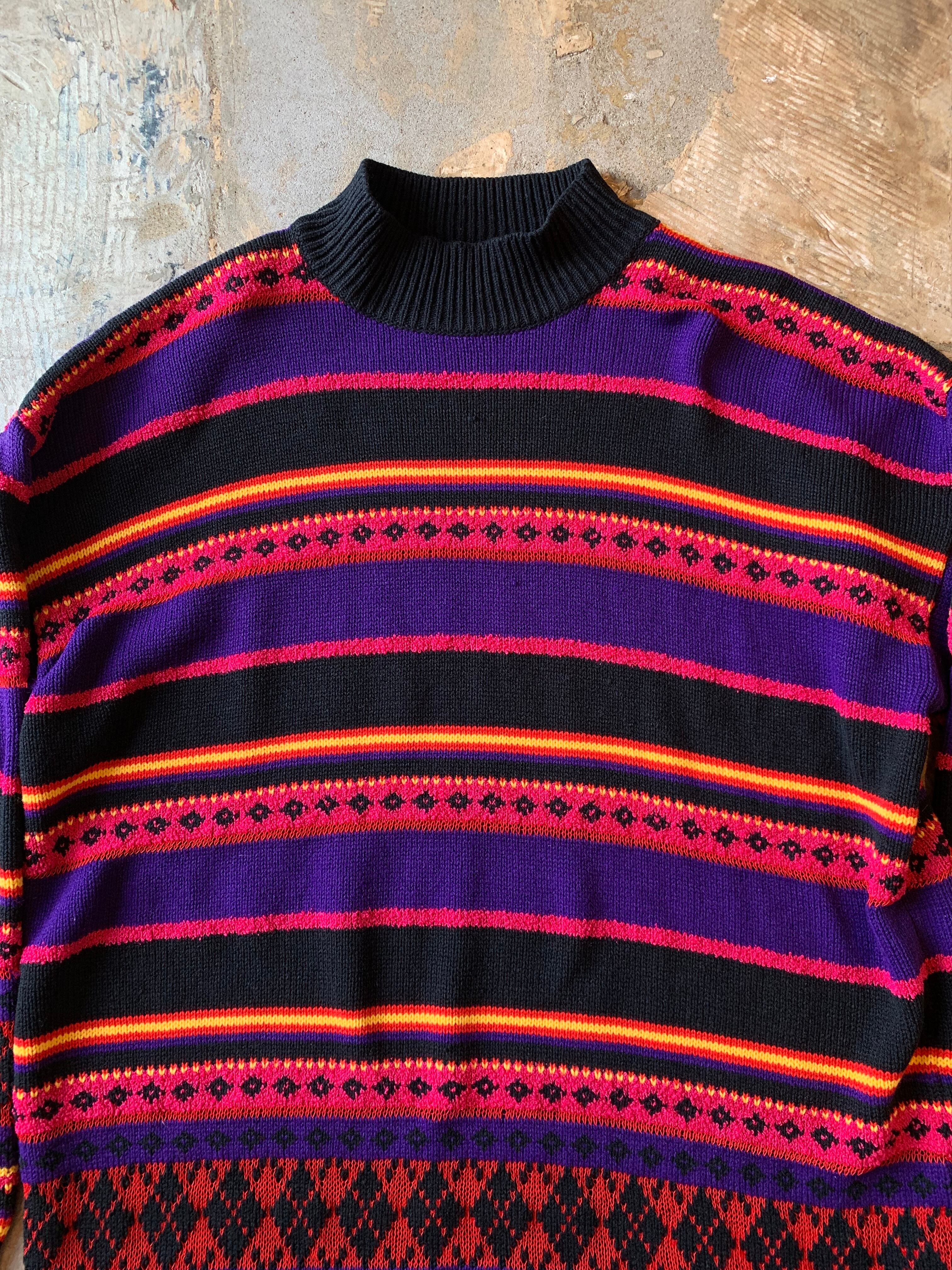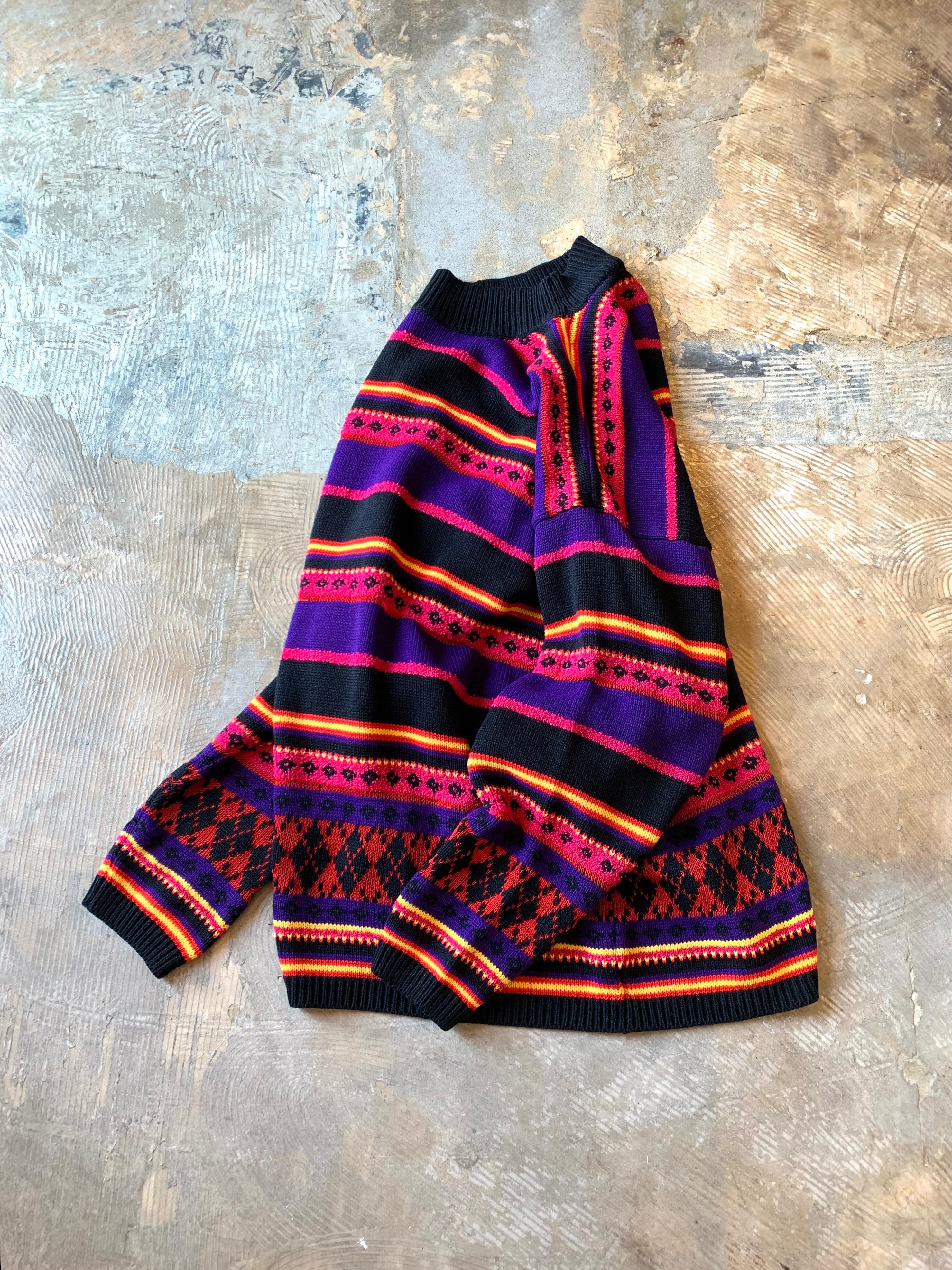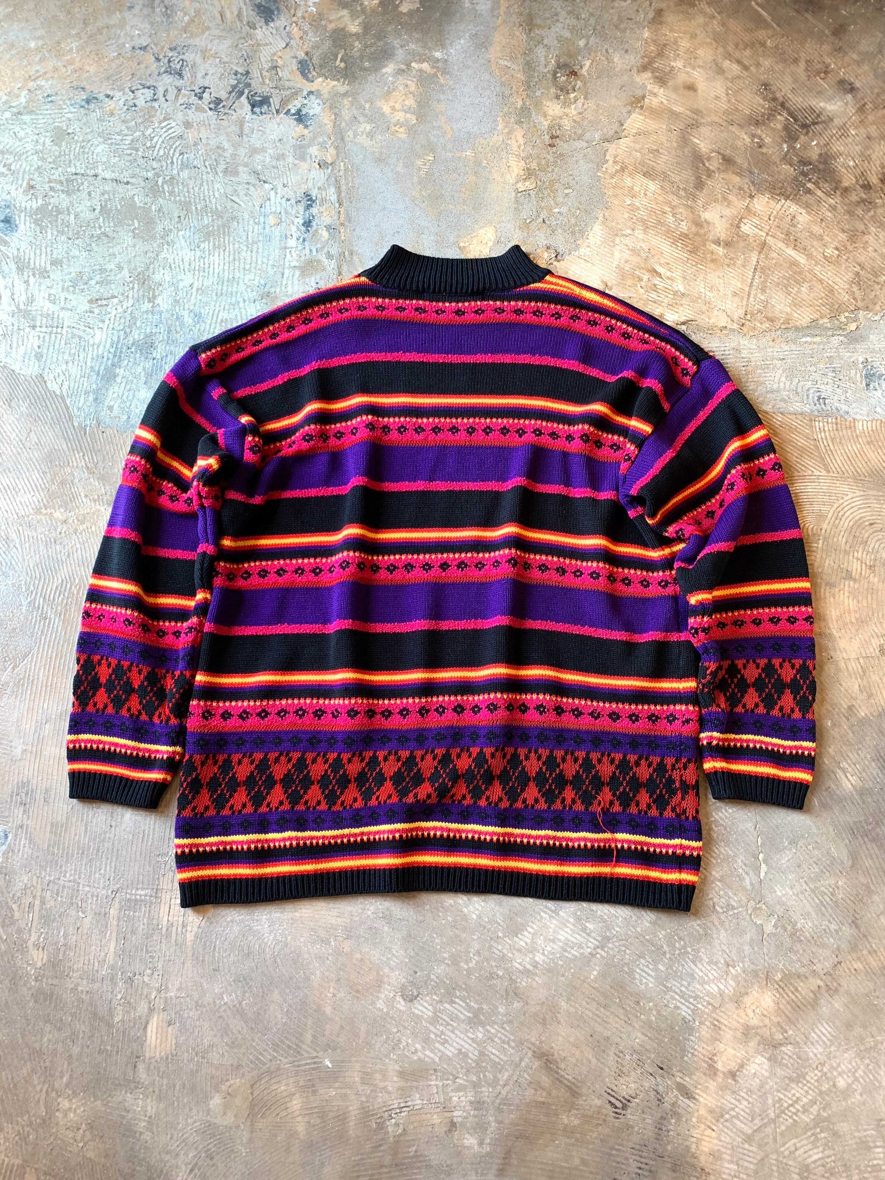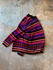1990's "KAREN SCOTT" border pattern high neck acrylic knit