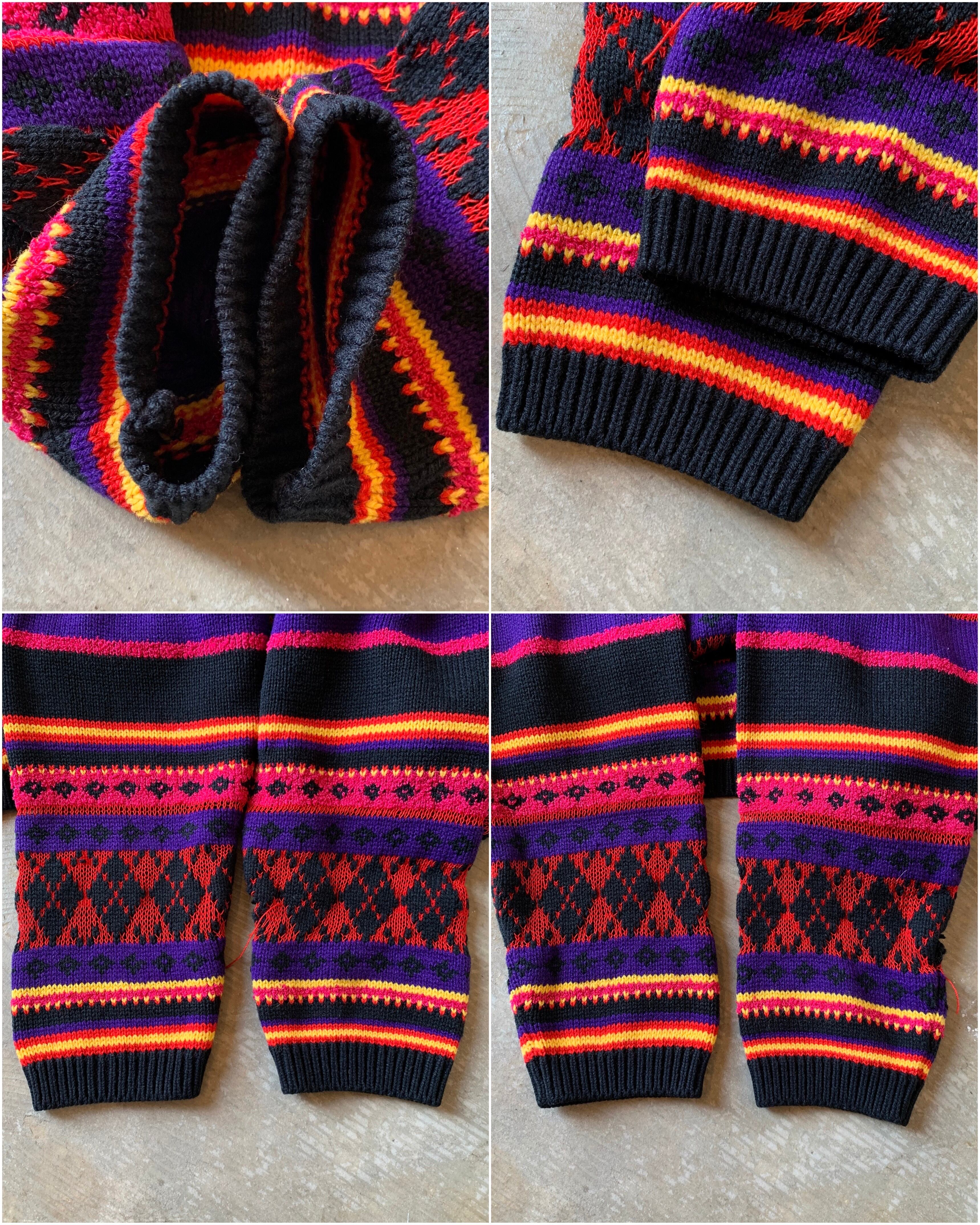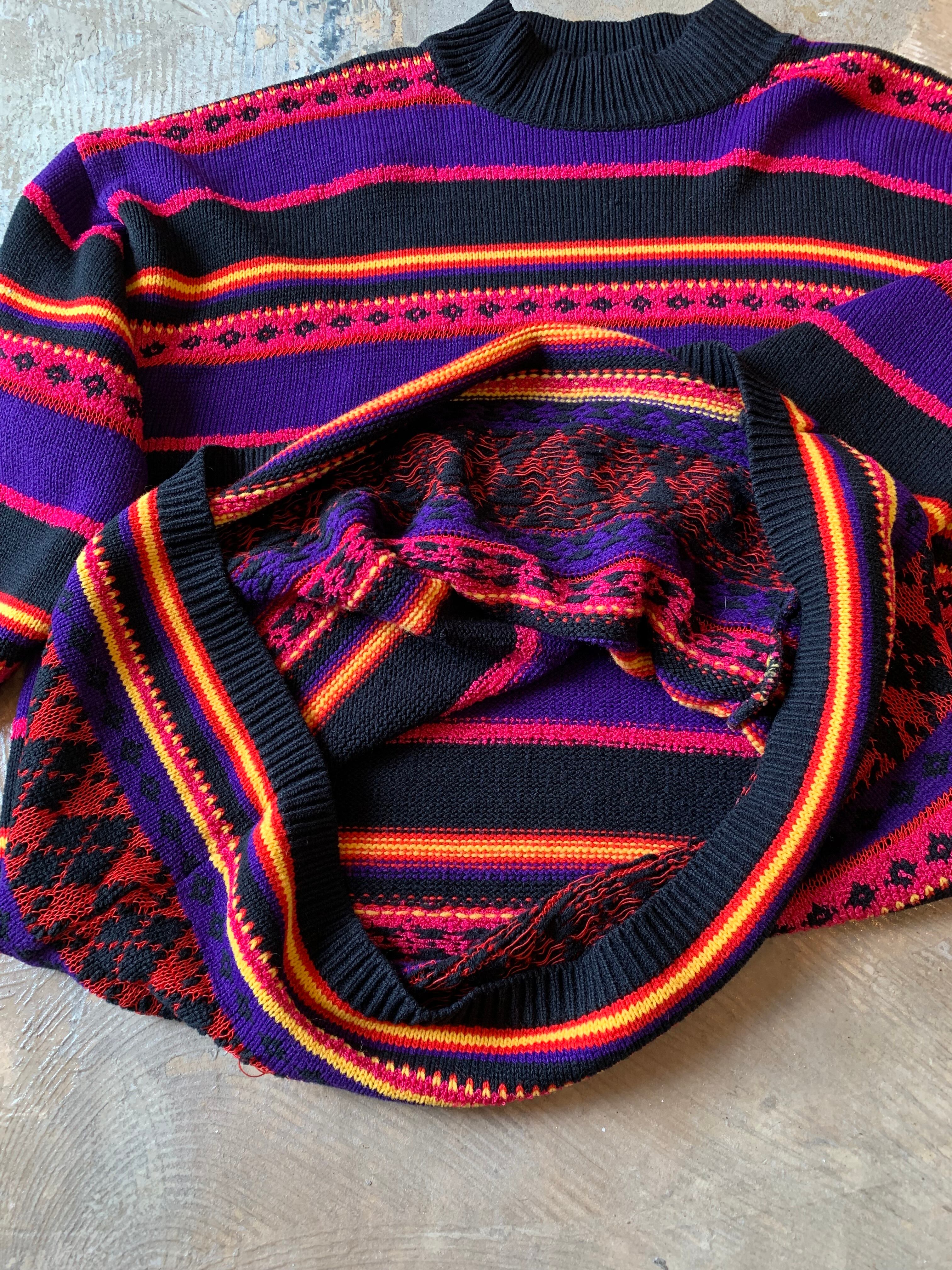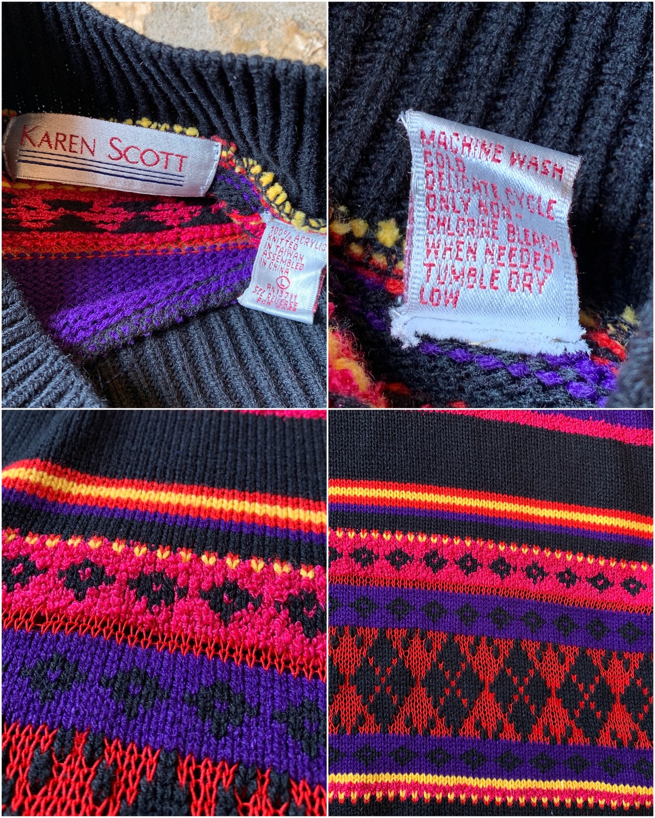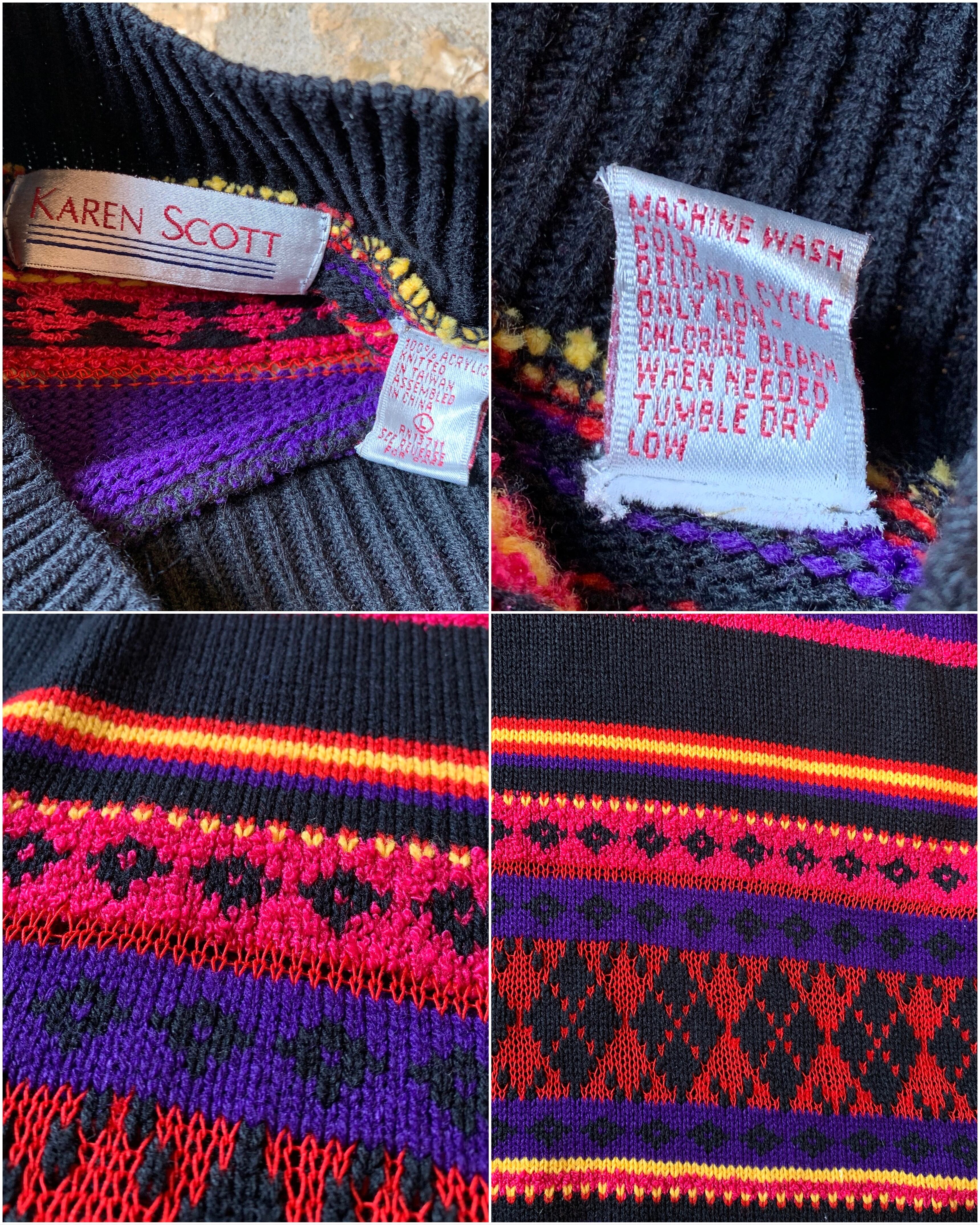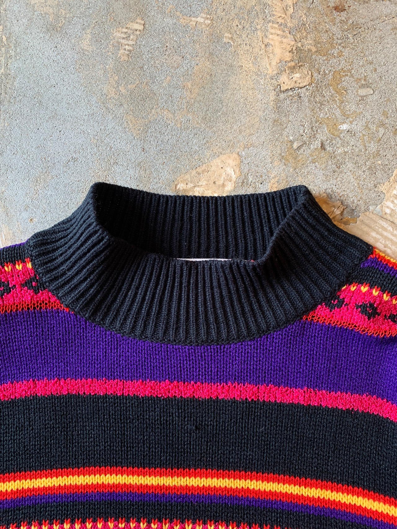 1990's "KAREN SCOTT" border pattern high neck acrylic knit