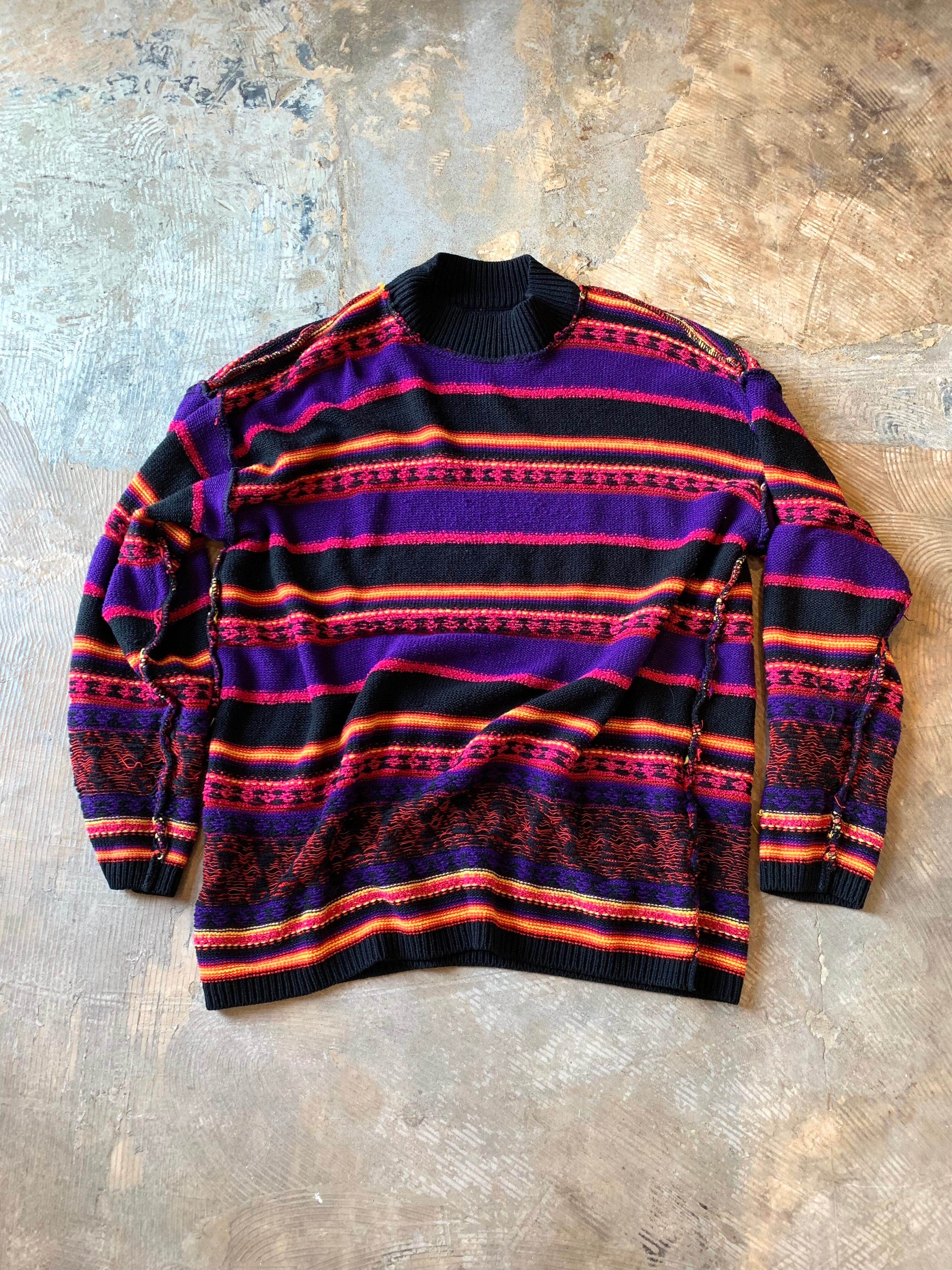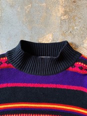 90年代頃のKAREN SCOTT製、ボーダー柄のハイネック、アクリルニット。