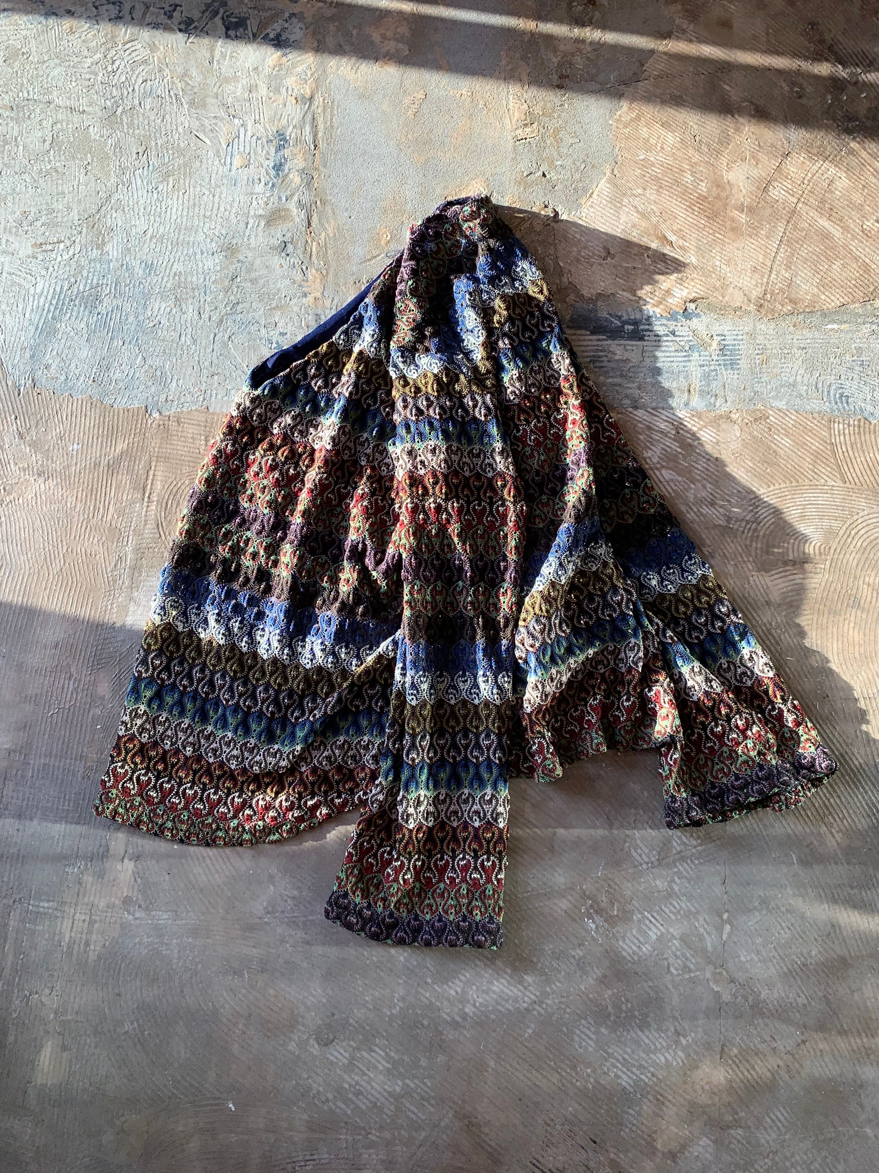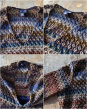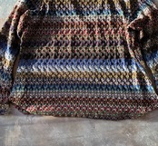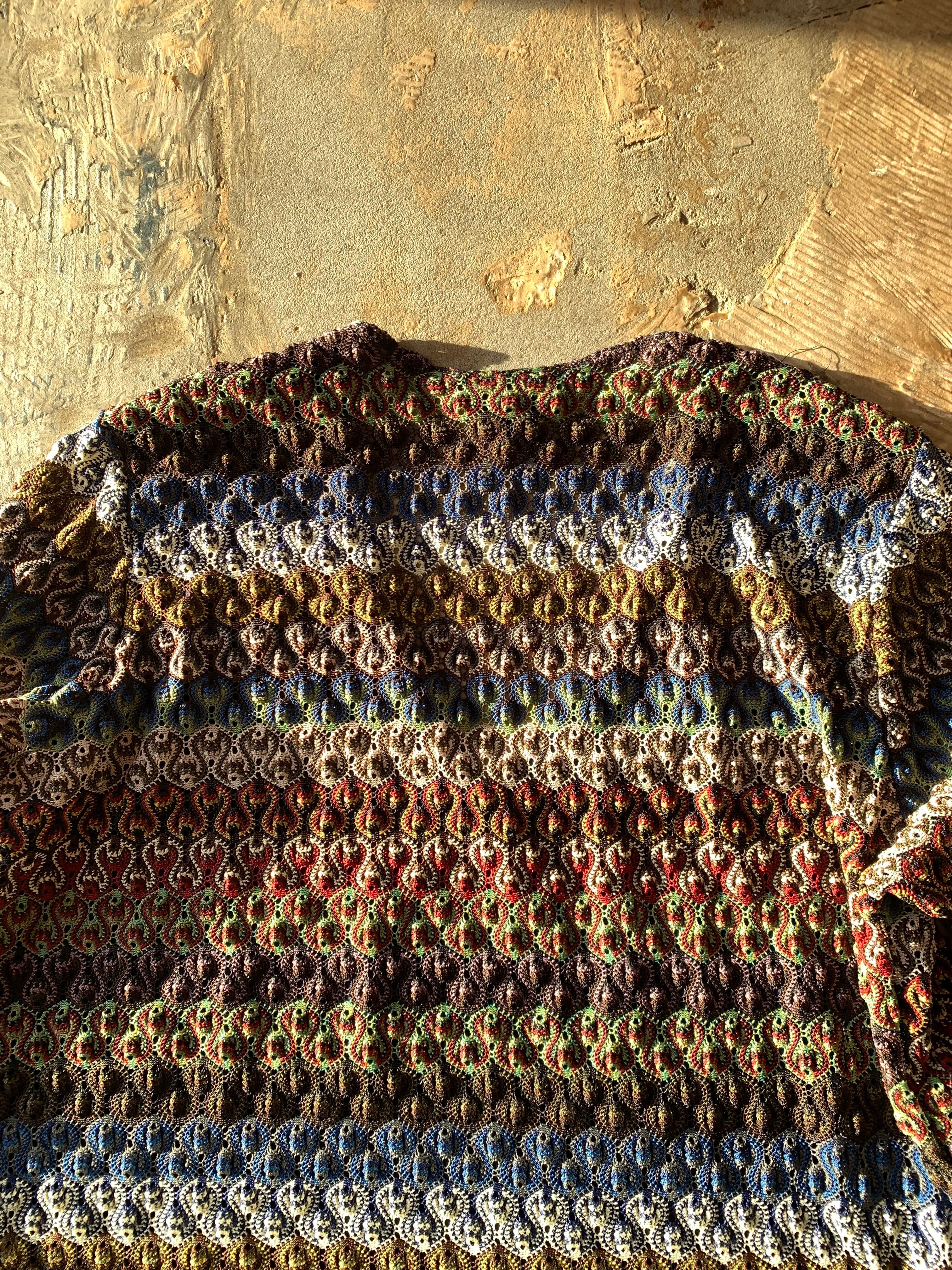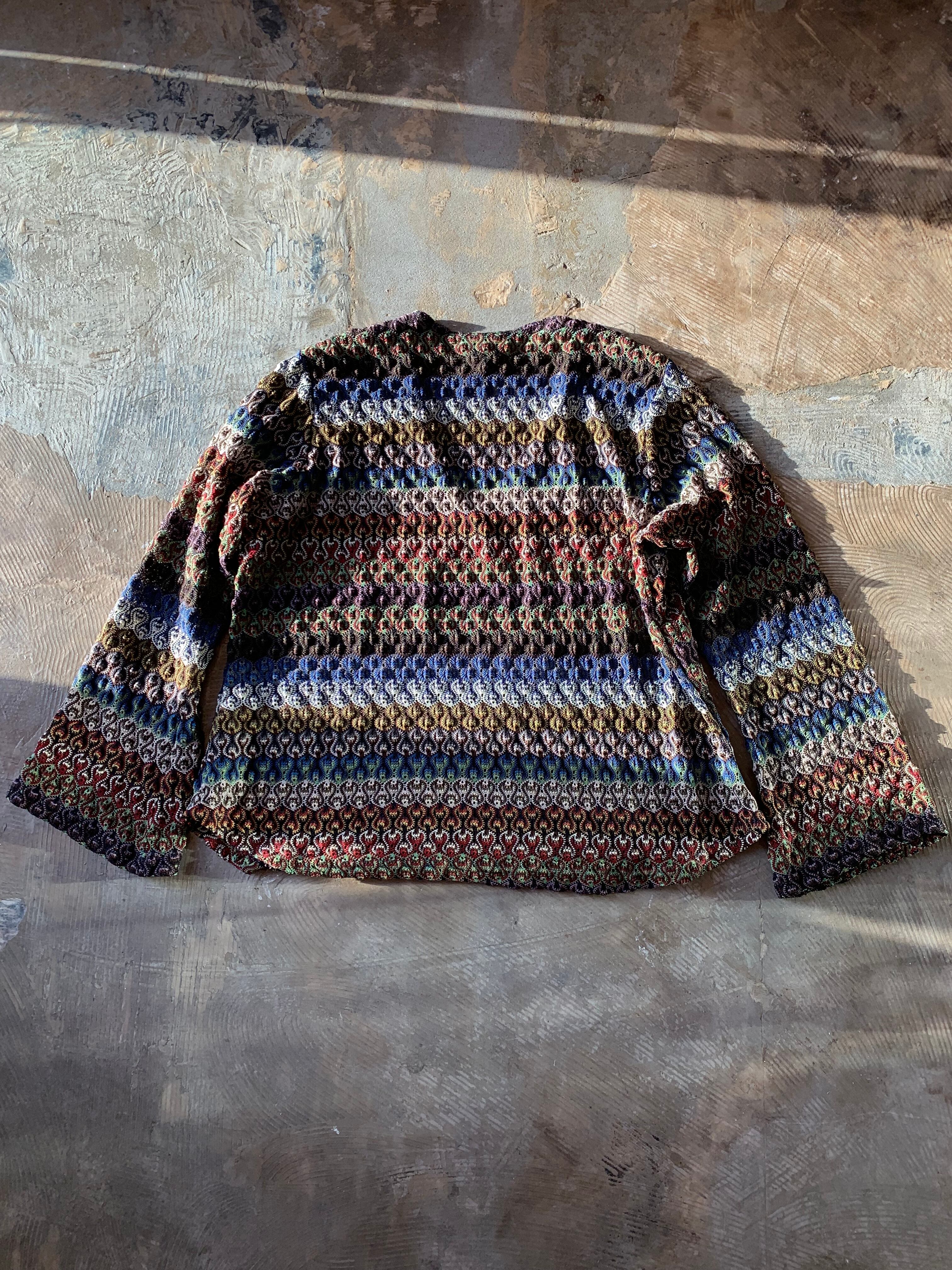 多色使いのカラーリングでボーダーパターン、オトナな深めのVネック、袖も袖先に向かって広がるデザインが滅茶苦茶クールな1着。