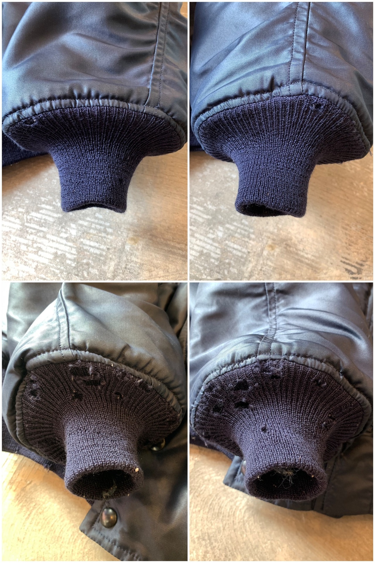 袖リブに虫食いの穴はありますがボディの色落ちや日焼けは無くまっ紺紺のエアフォースブルーが綺麗です‼︎