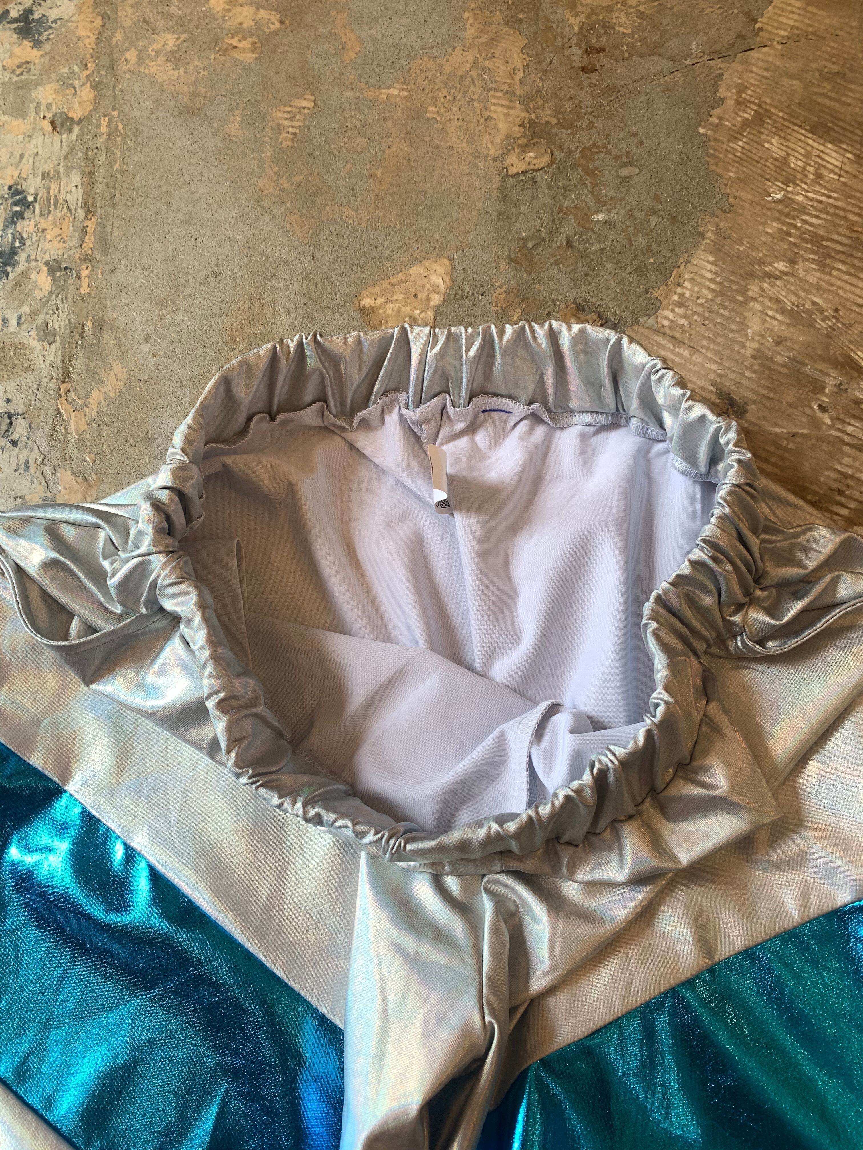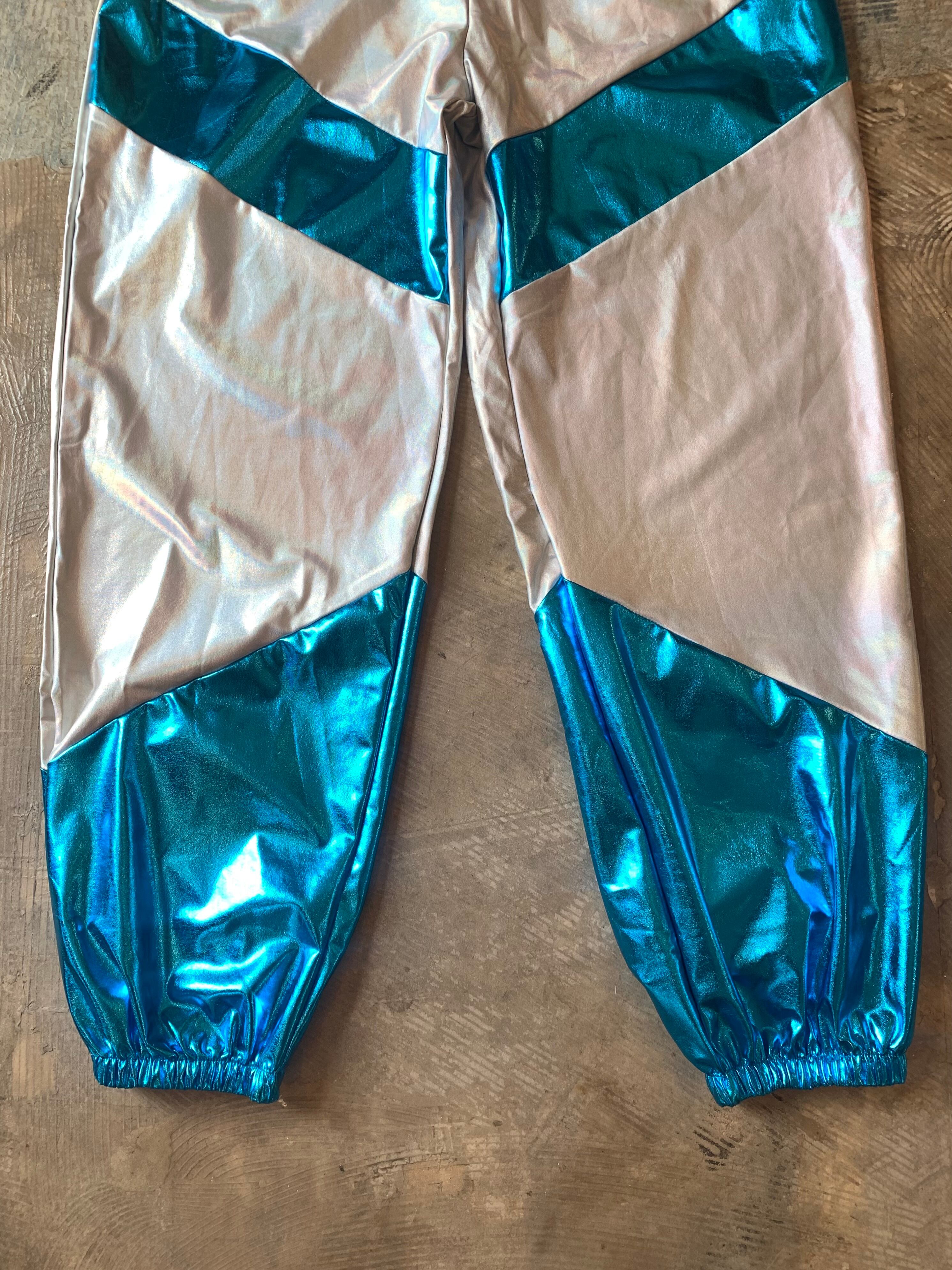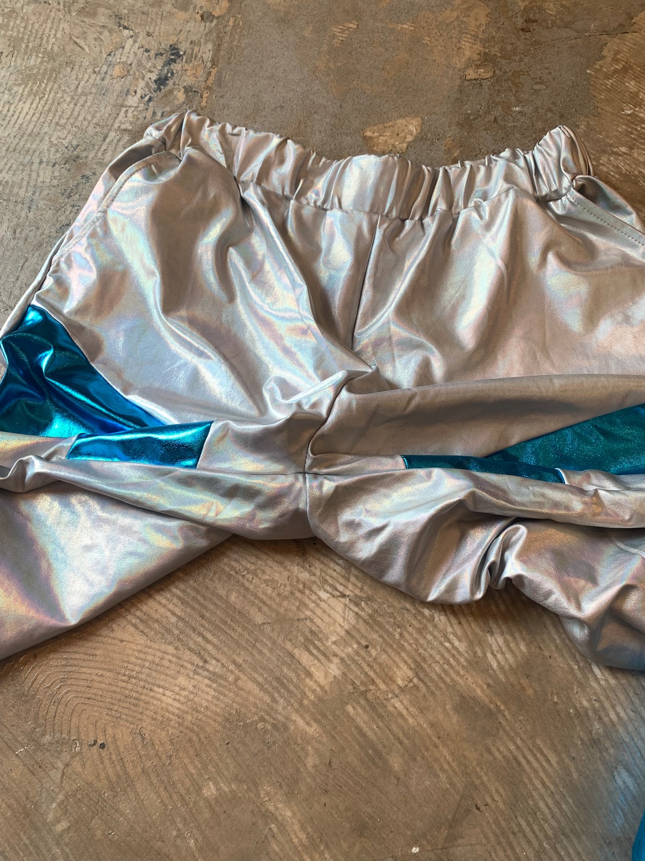 Y2K、2000年代頃のメタリックカラーが目を惹くデザインパンツ。