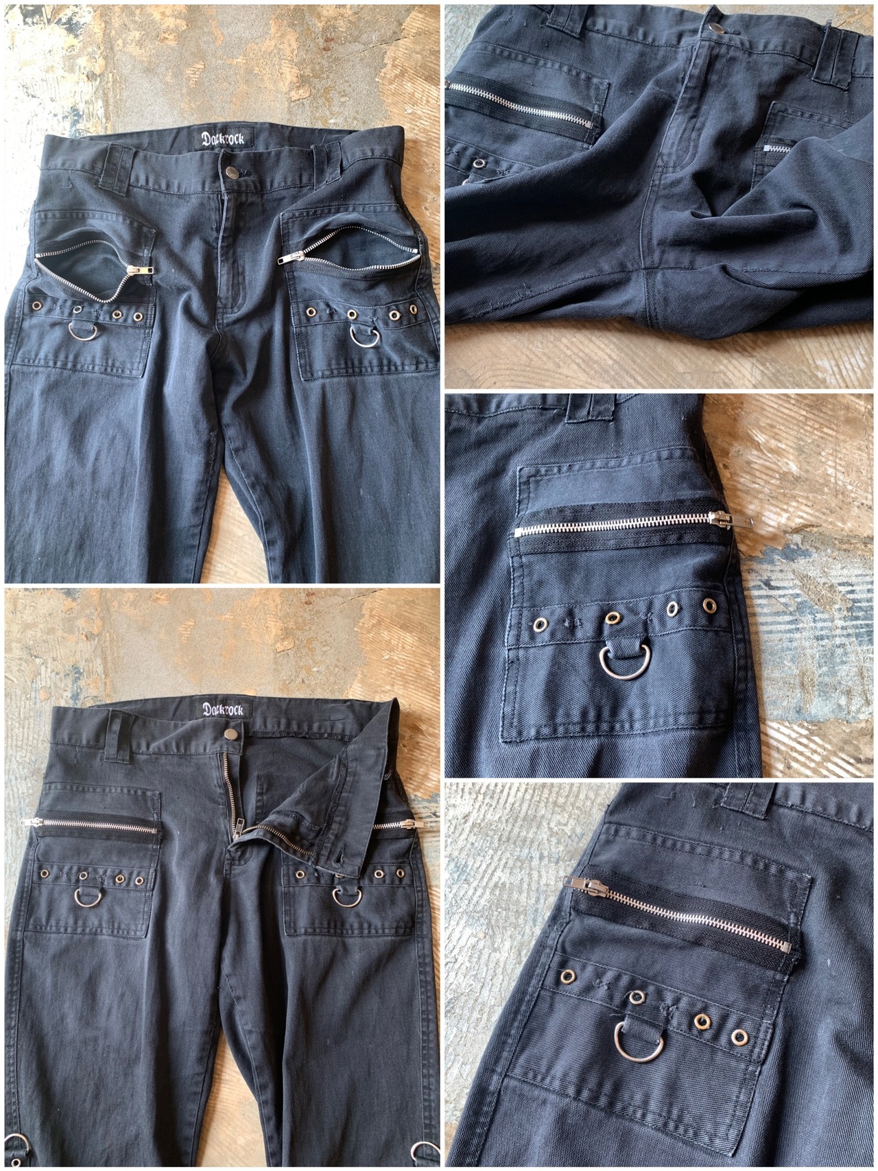 Y2K、2000年代頃のdarkrock製、ジップ&ポケットのデザインパンツ。