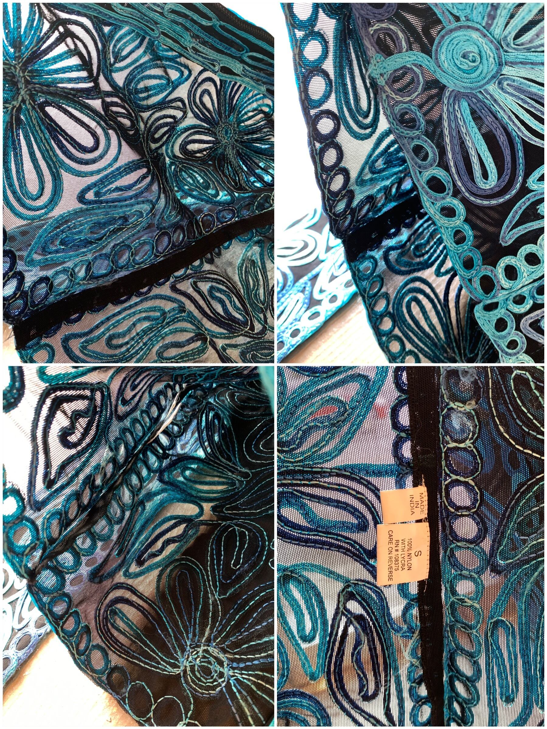 ブラックのシアー生地のベースに刺繍の柄を丁寧に縫い付けてます‼︎