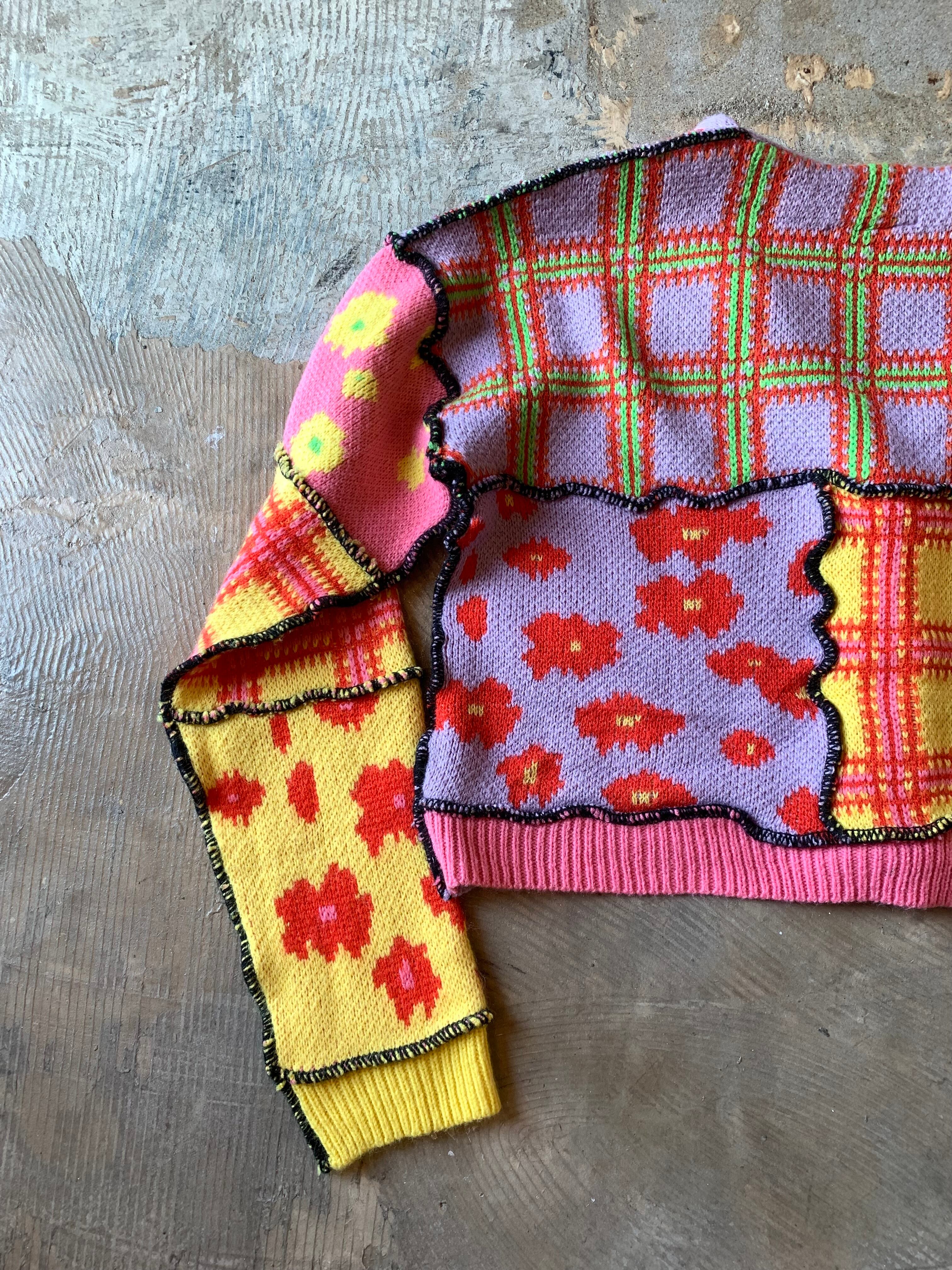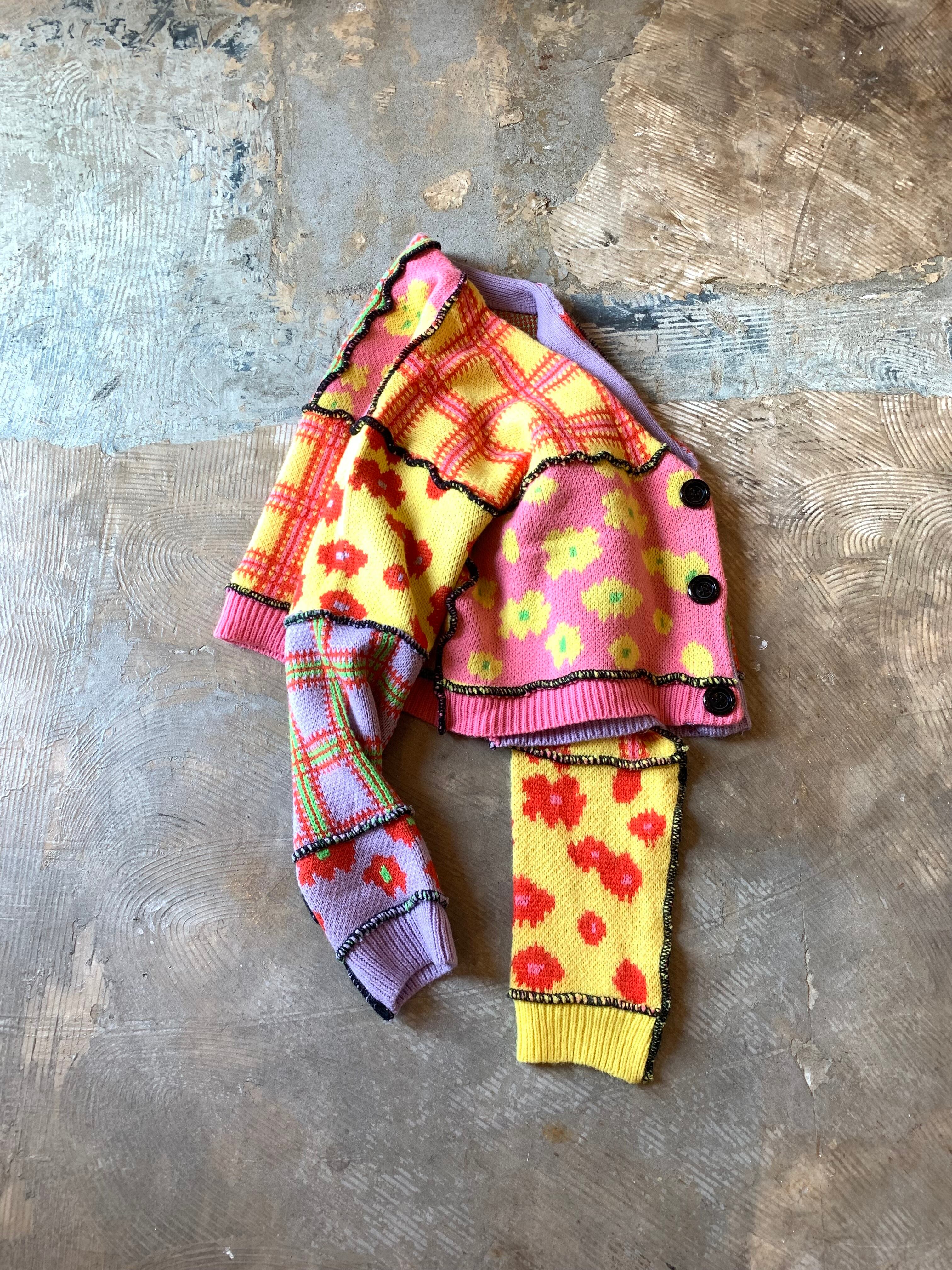 2000年代頃のショートレングスのデザインアクリルニットカーディガン。