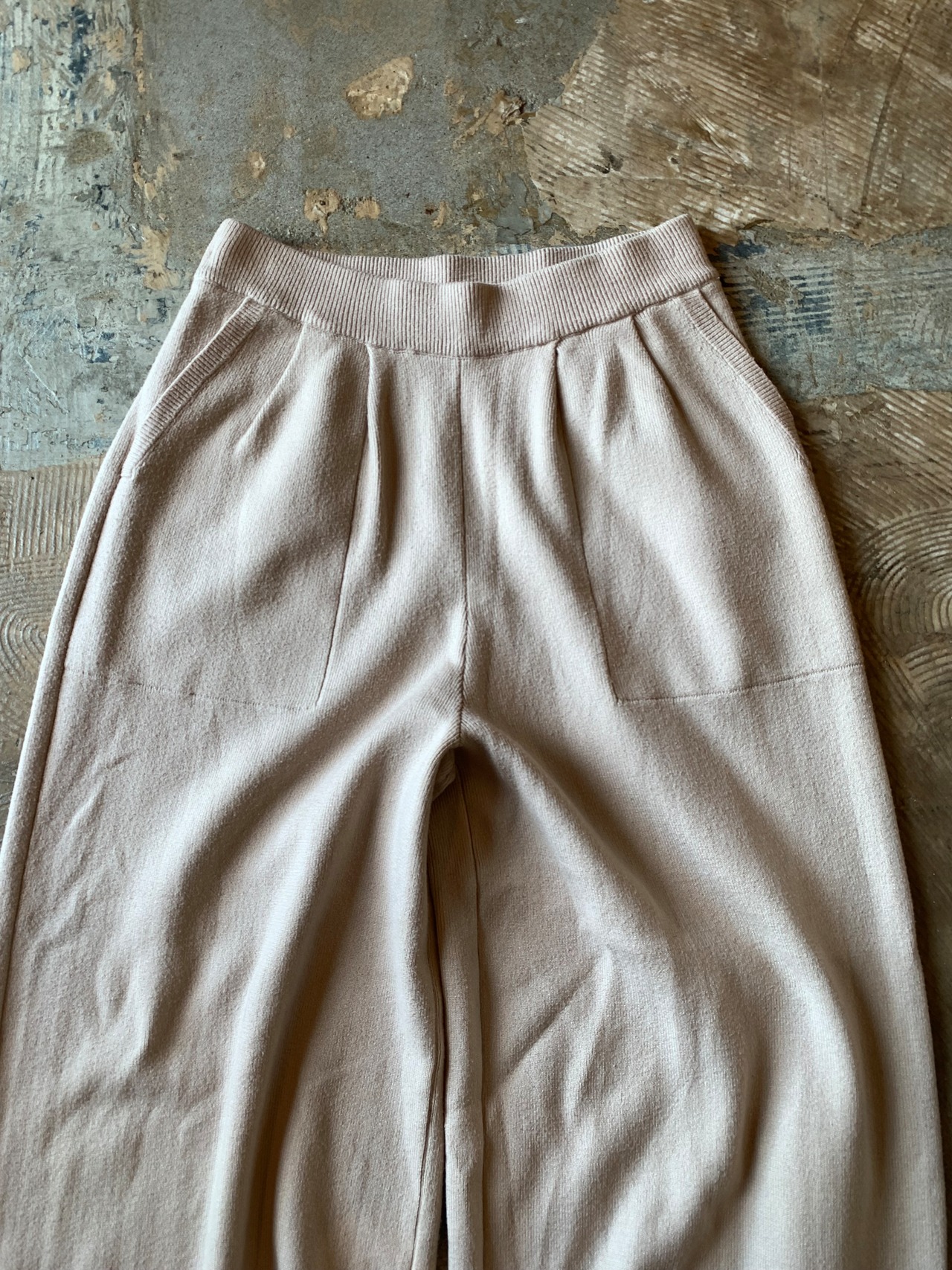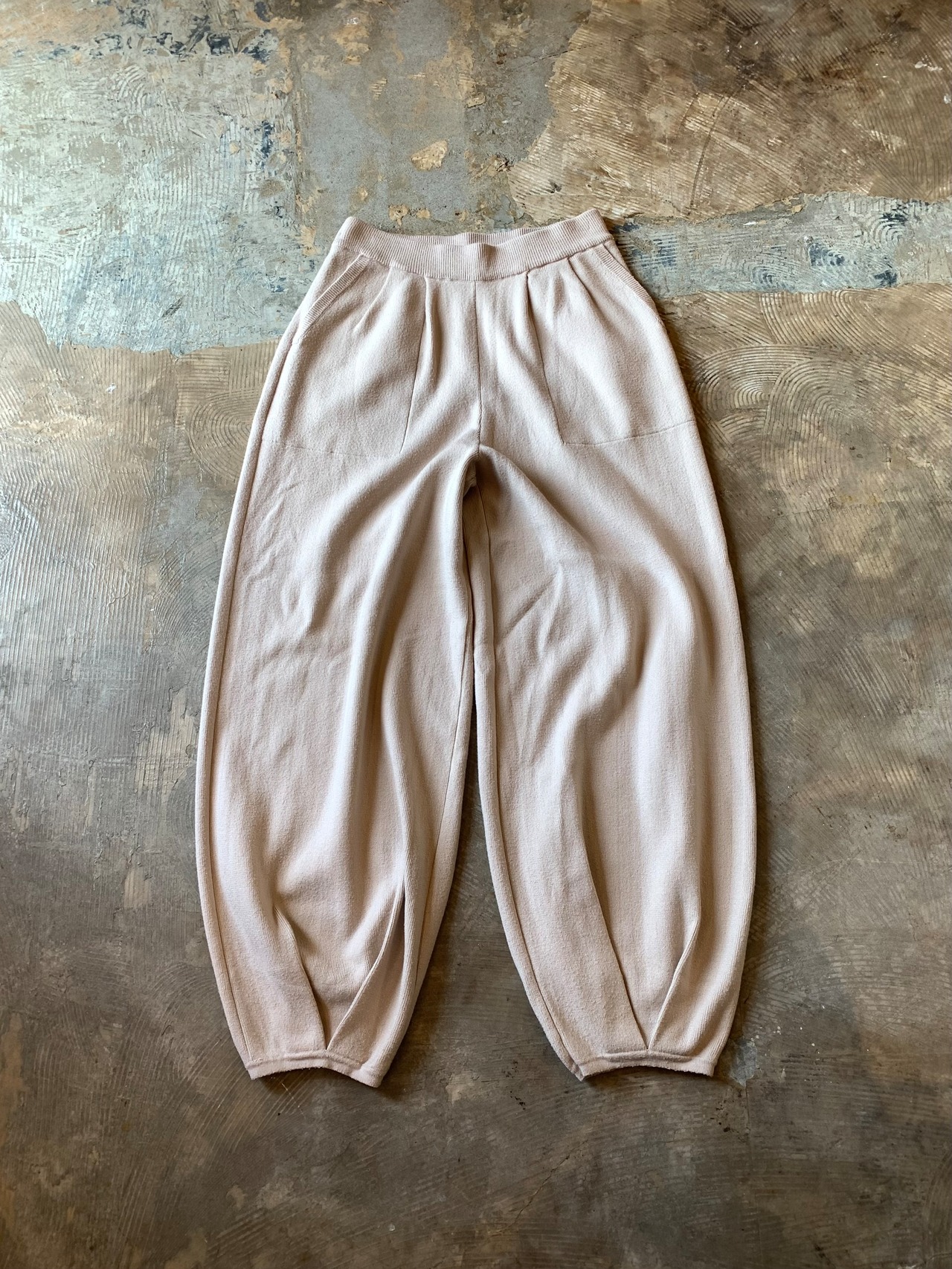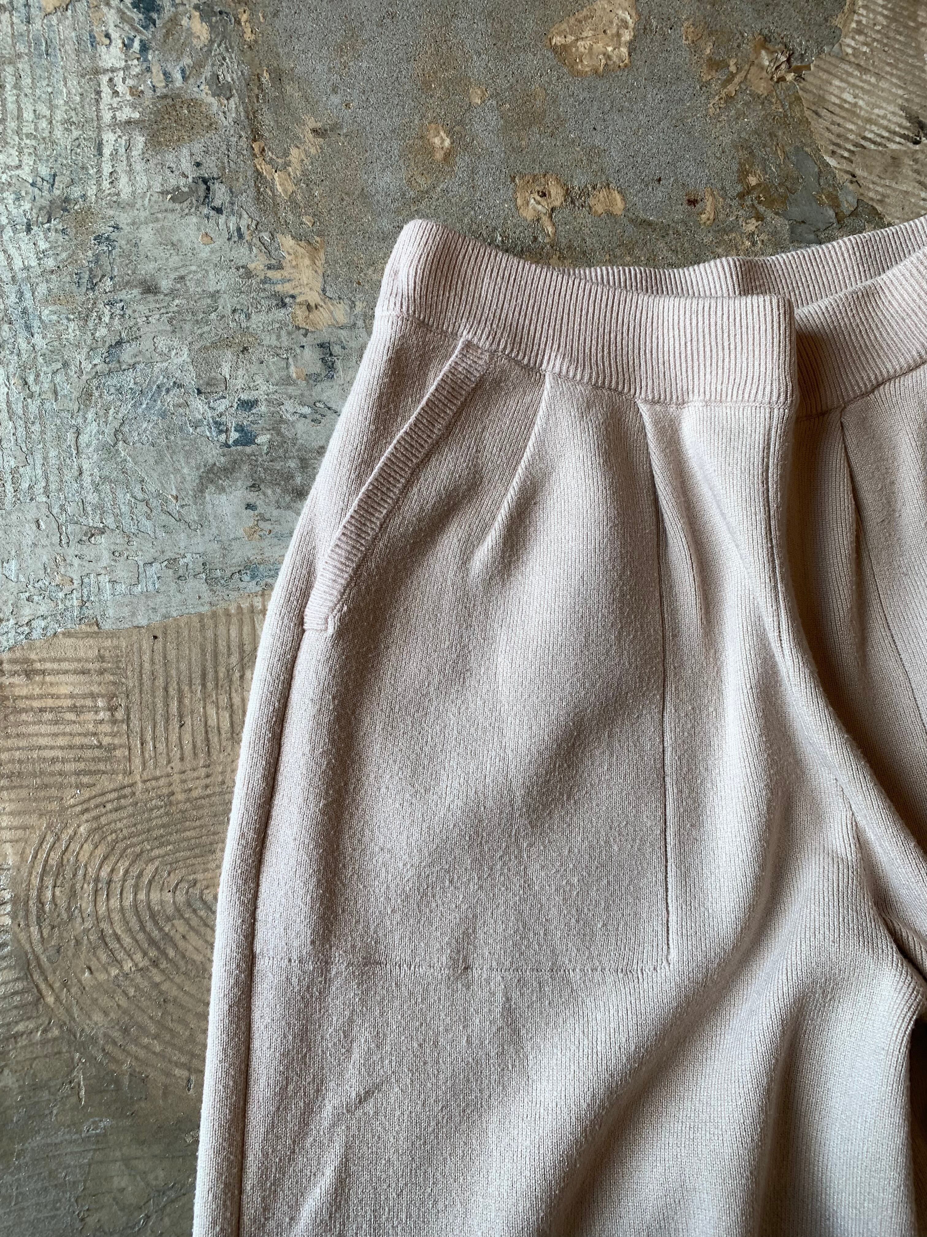 パッと見はスエットパンツにも見えますが生地はコットンポリエステルの少し厚手のニットパンツなので上品なイメージ。