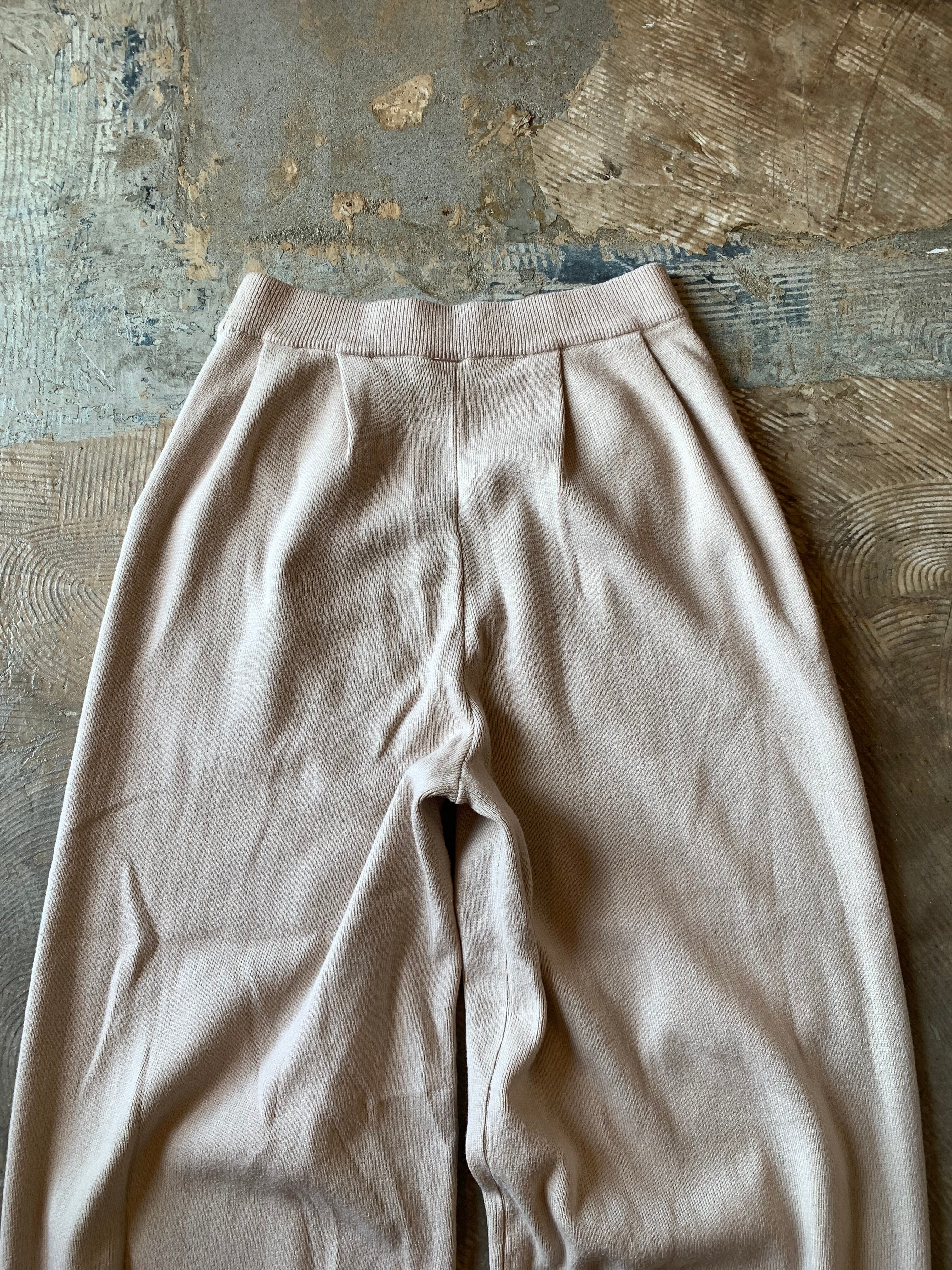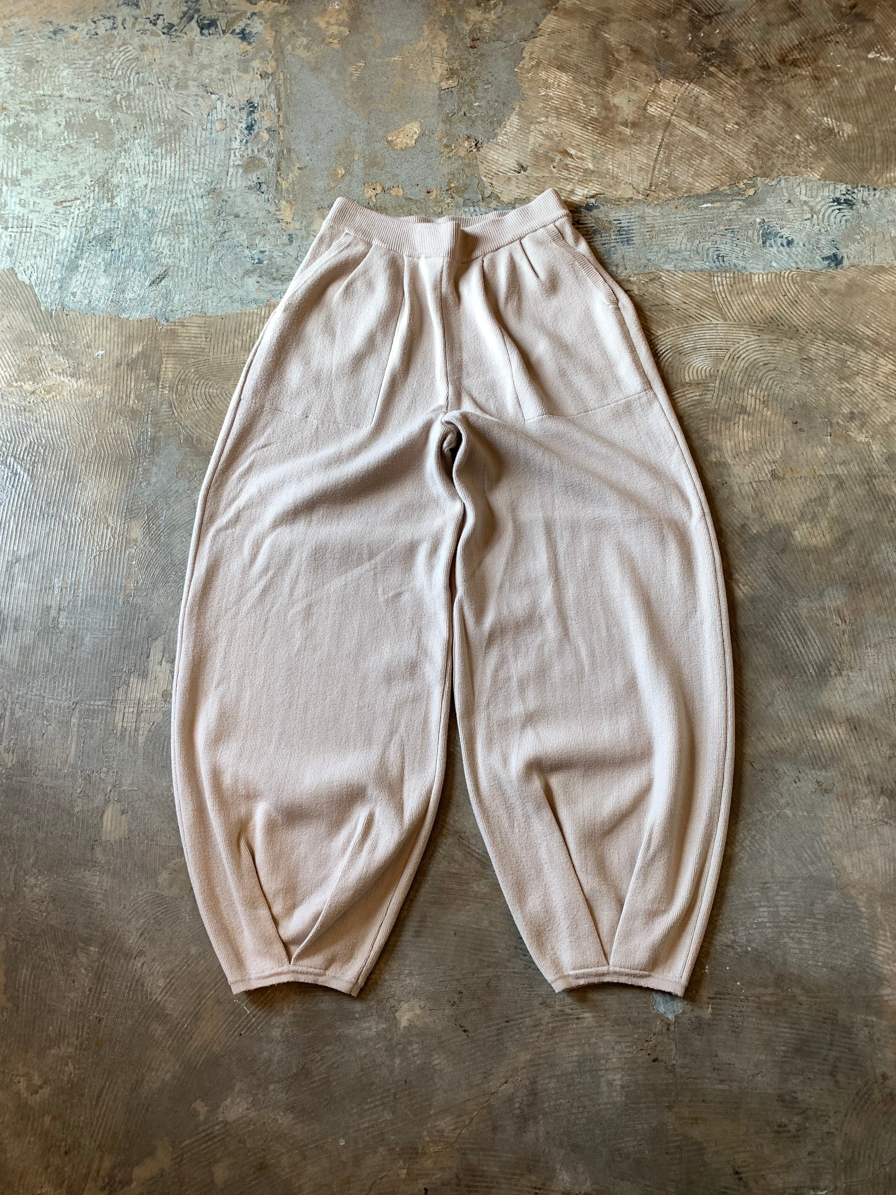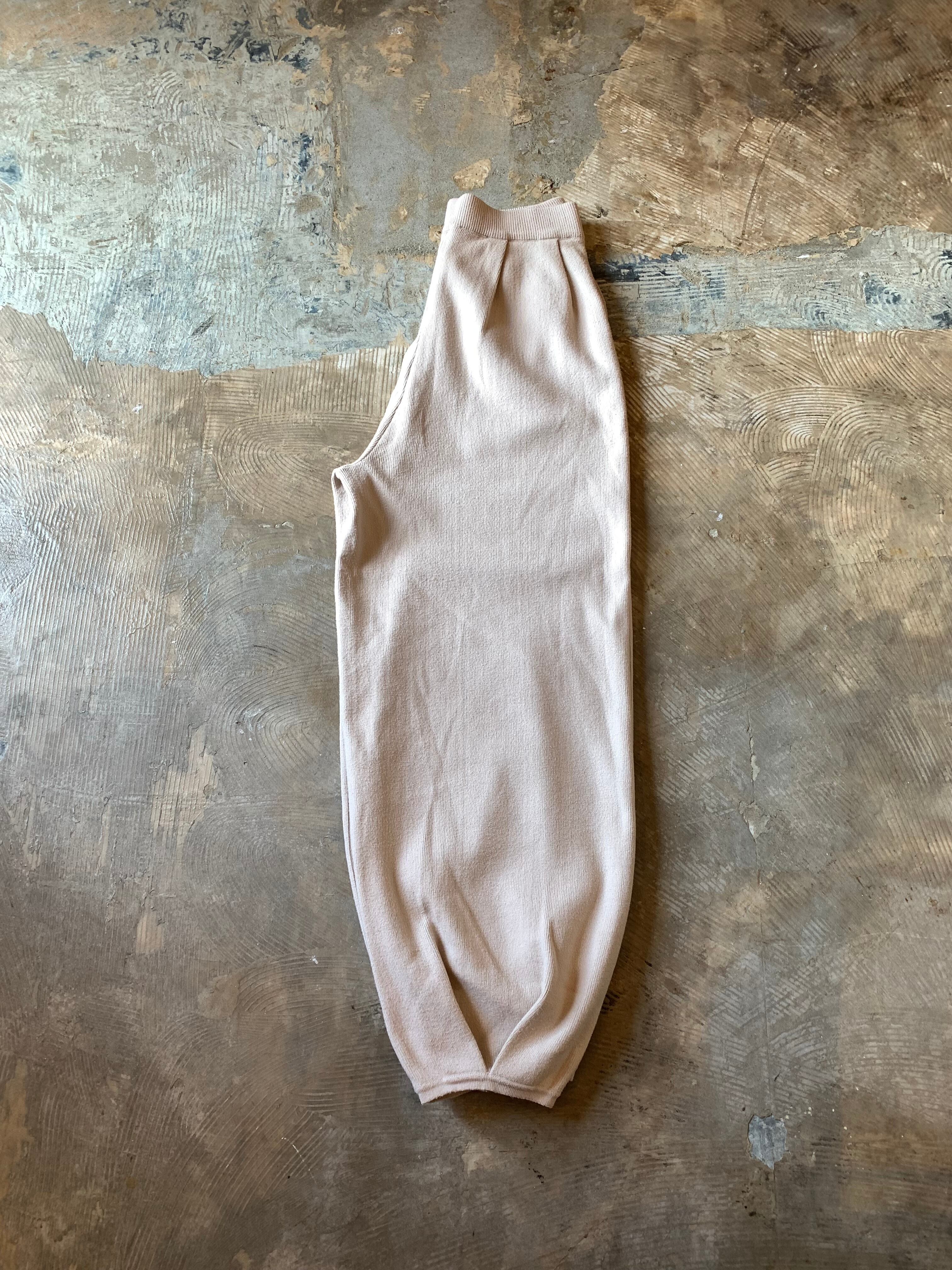 パッと見はスエットパンツにも見えますが生地はコットンポリエステルの少し厚手のニットパンツなので上品なイメージ。
