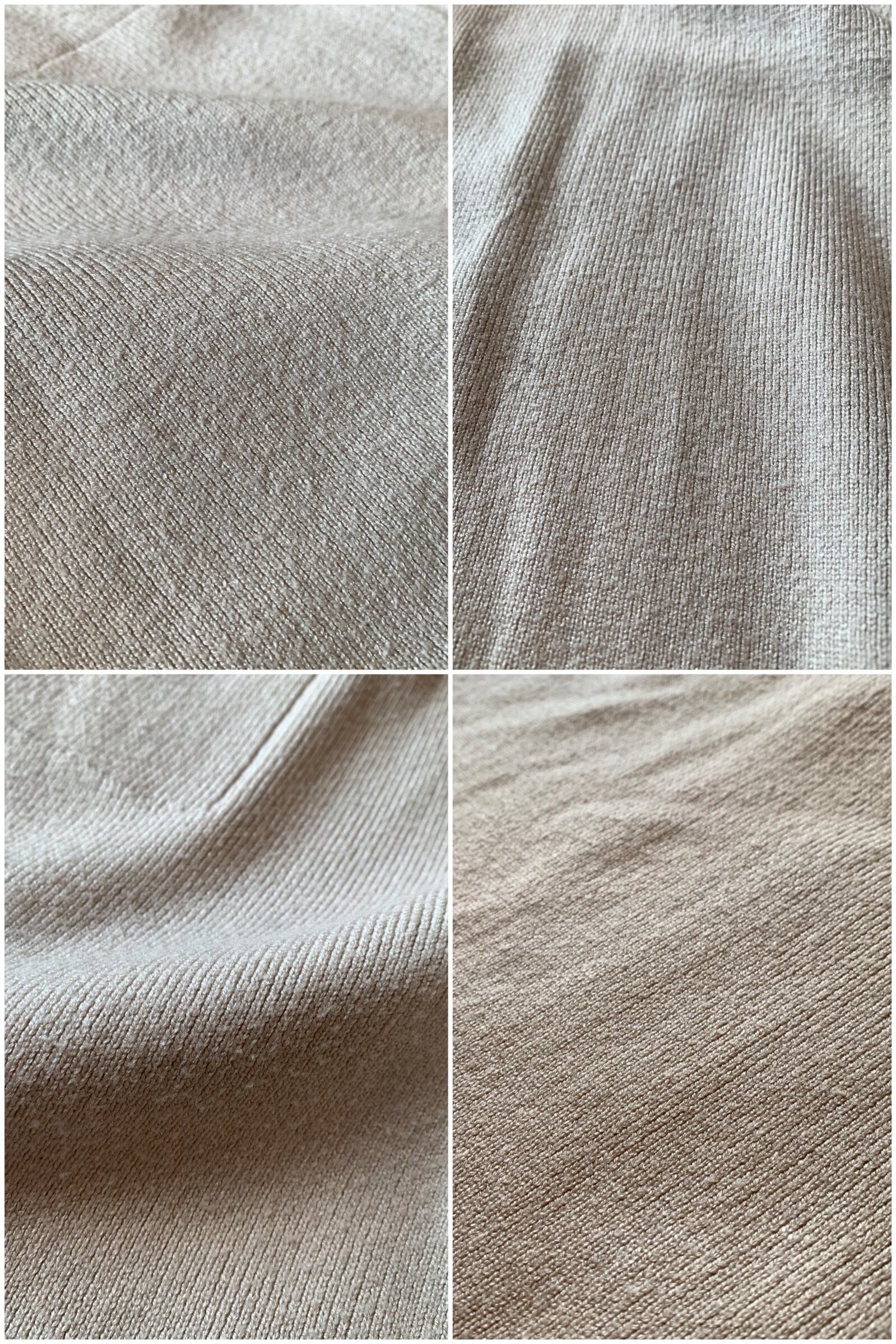 特に柄やデザインが入らないのでシンプルなニットパンツと思いきや裾先に変形的なステッチが入っており切り替えしされたデザインが滅茶苦茶個性的なニットパンツ‼︎