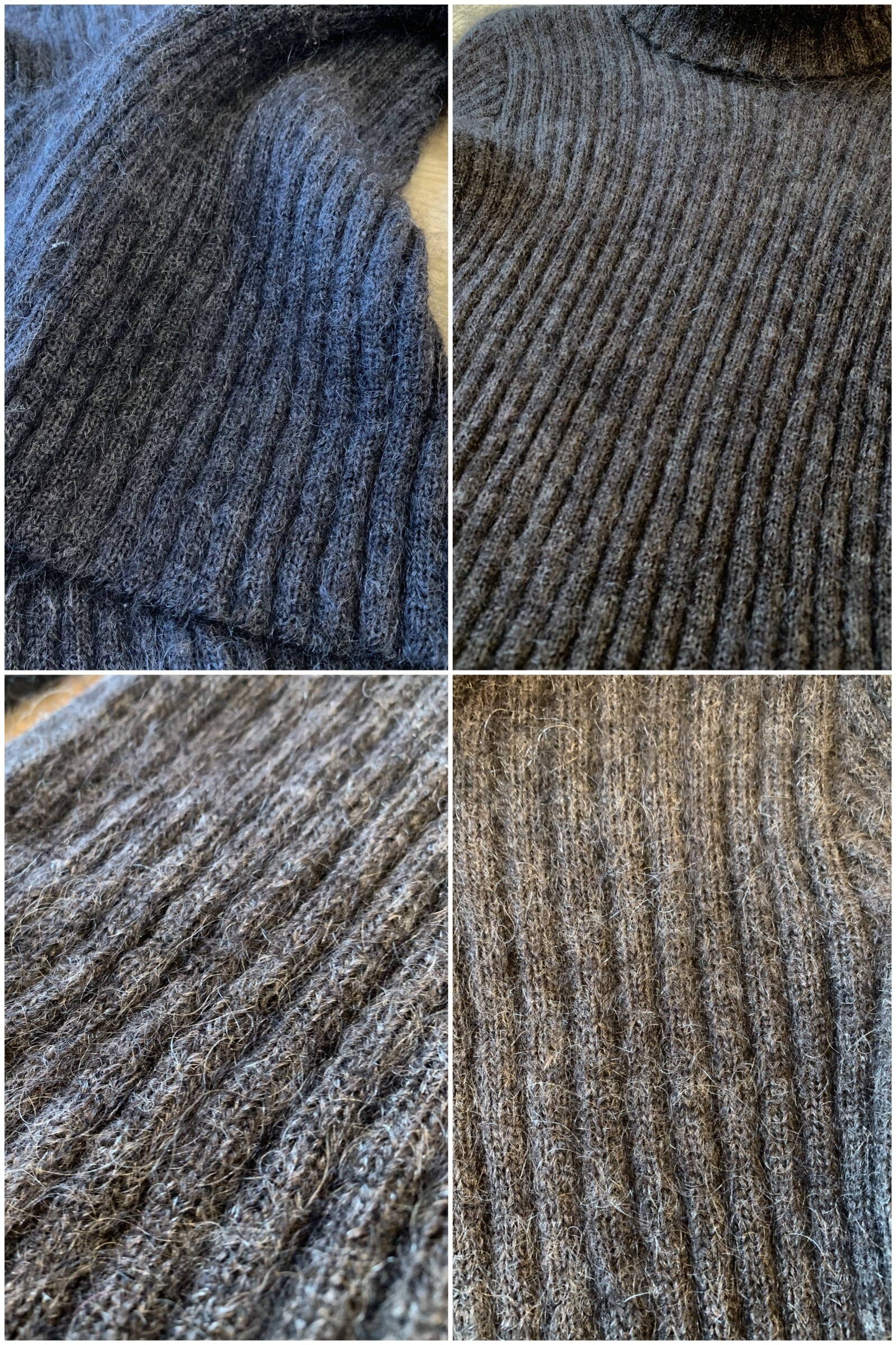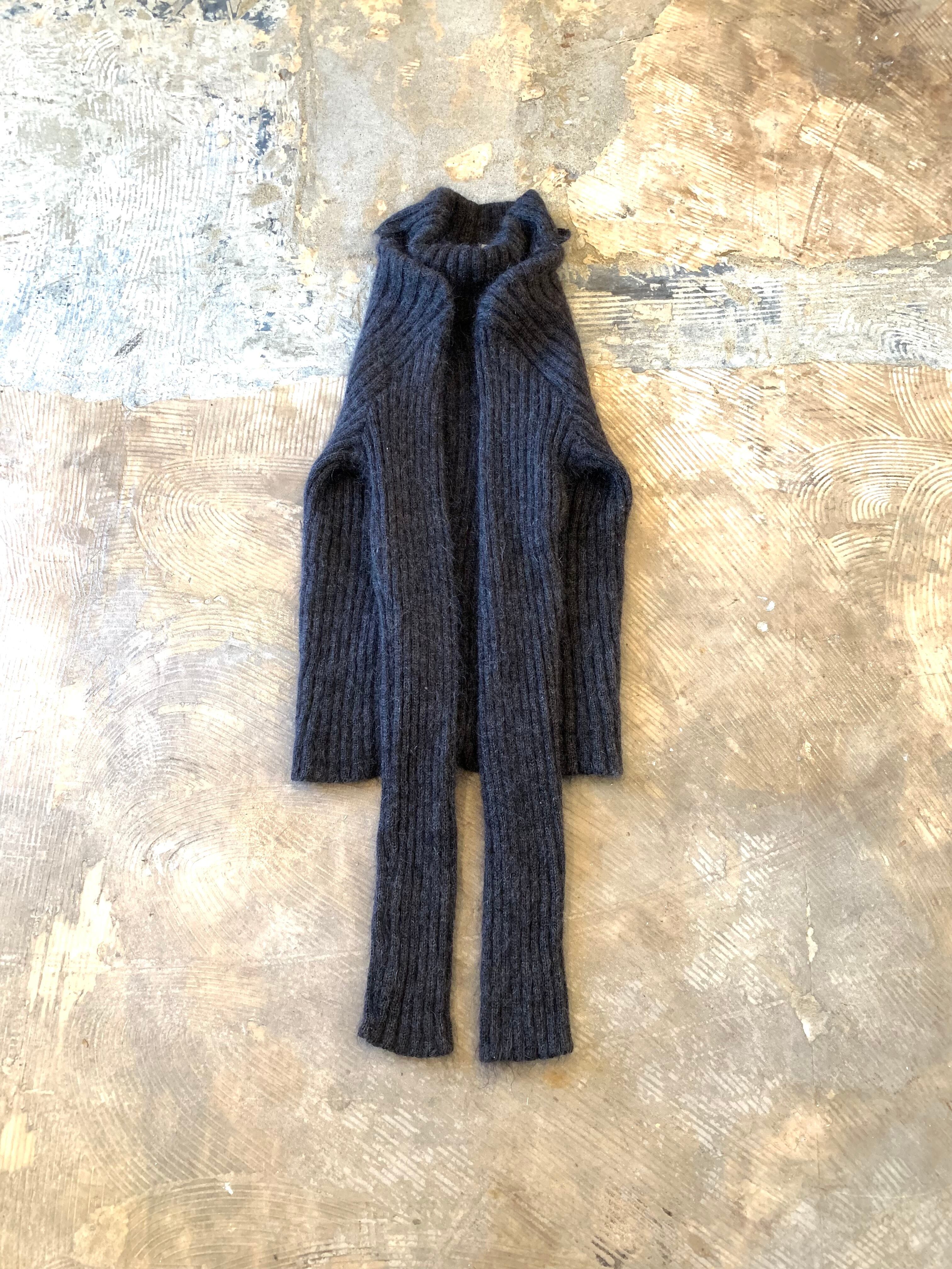 素材表記はありませんが毛質や手触りからウールにモヘアや何かが混ざってる感じです。