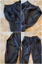 元々パンツの上から履くオーバーパンツなのでサイドジップが全部開いて両サイドトップもスナップボタンで開くのでパンツの上から簡単に履けるオーバーパンツのディテール‼︎