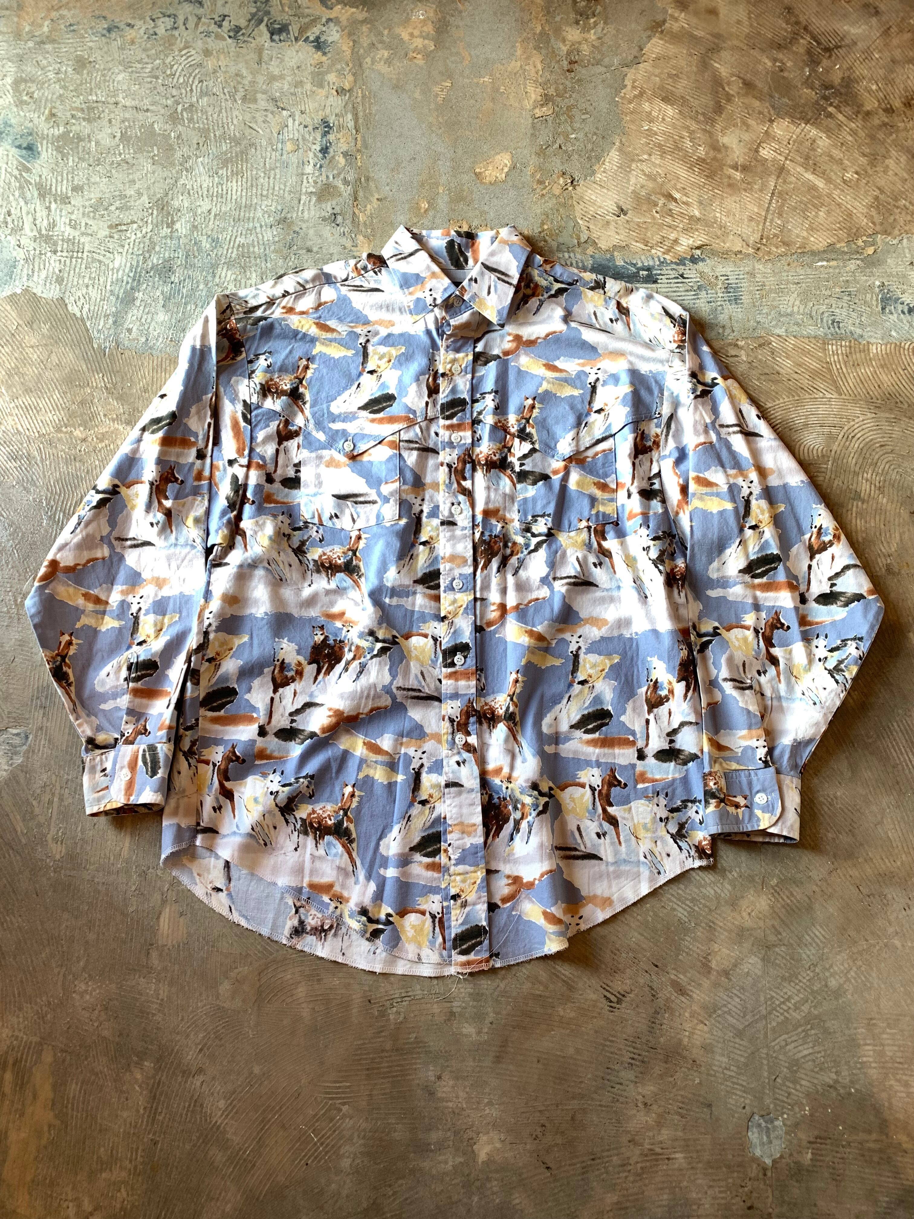 ホース、馬の総柄でビッシリと埋め尽くされたウエスタンシャツ‼︎